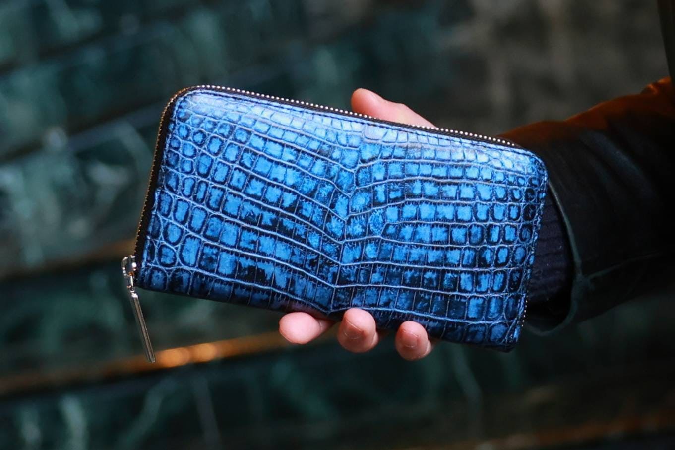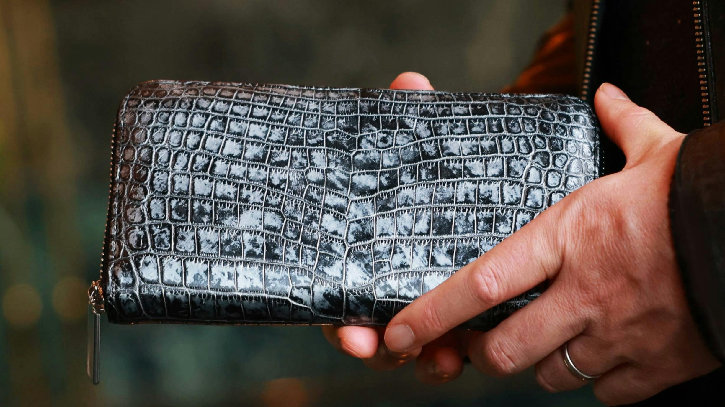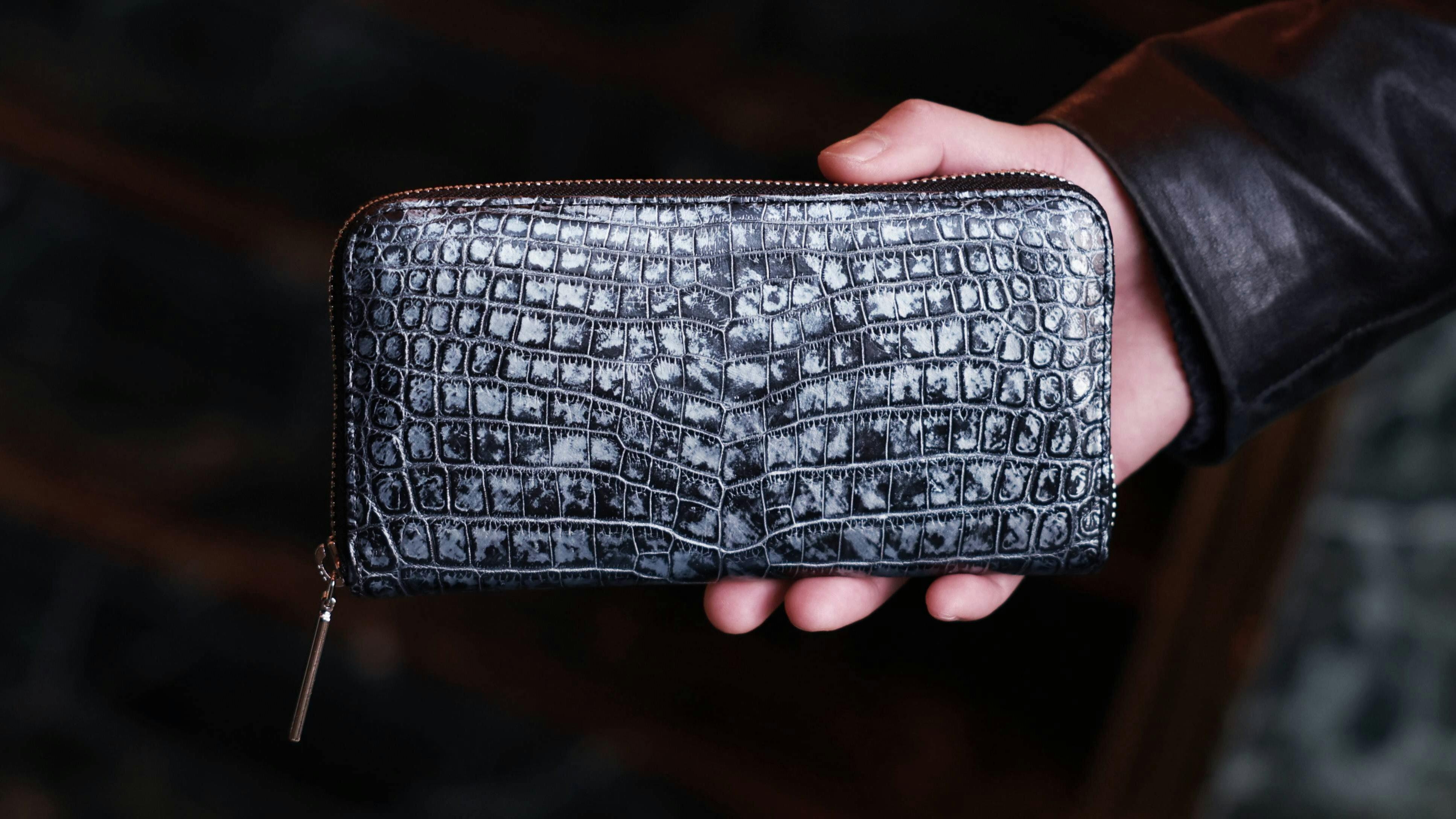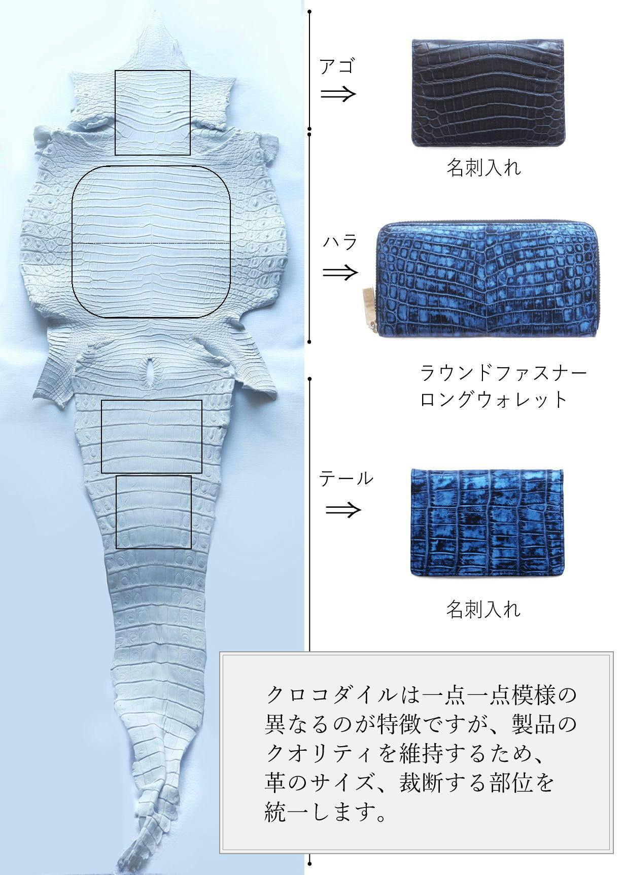 クロコダイルのうろこ模様に配慮した裁断をすることにより、お財布としての品格を高めてくれます。