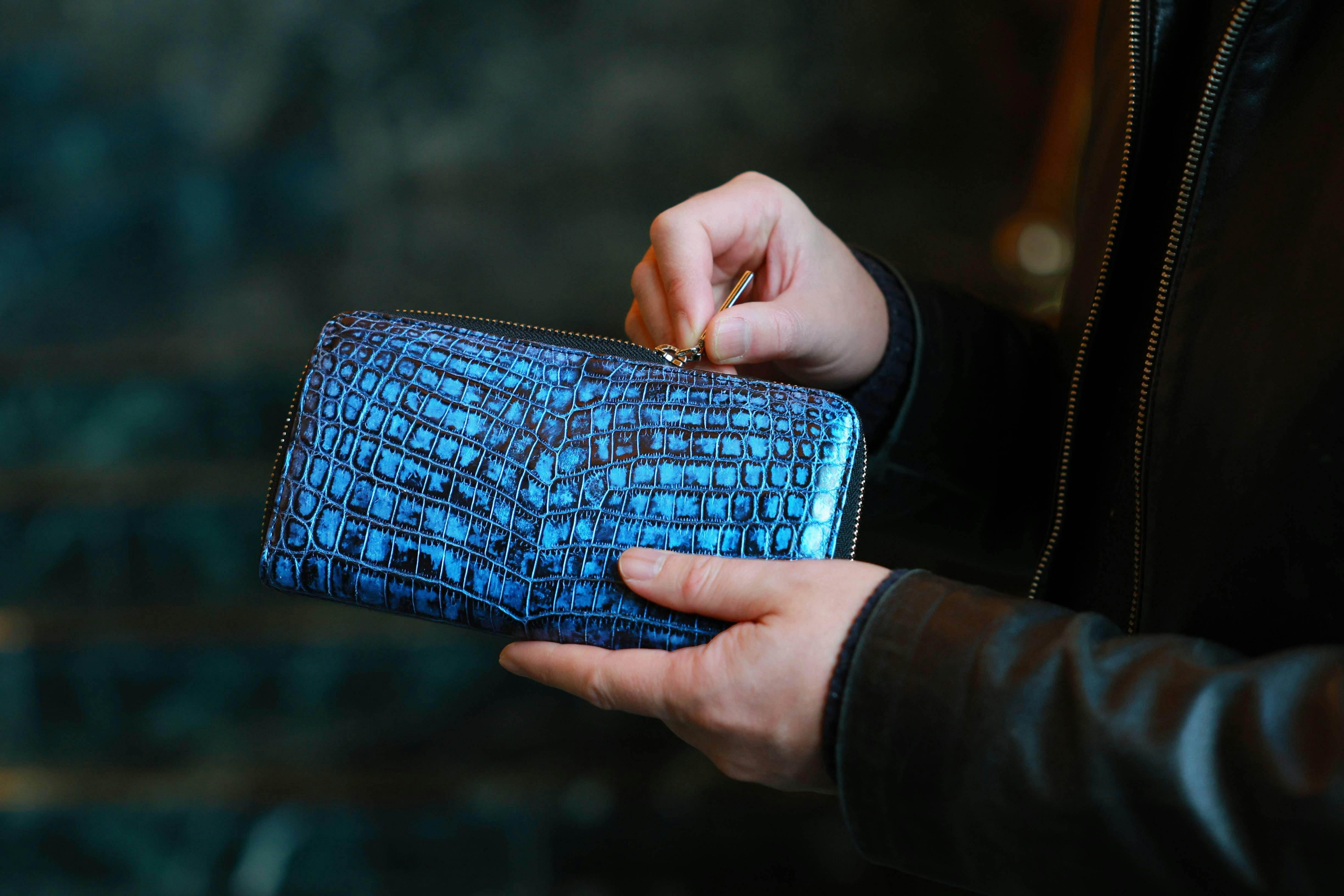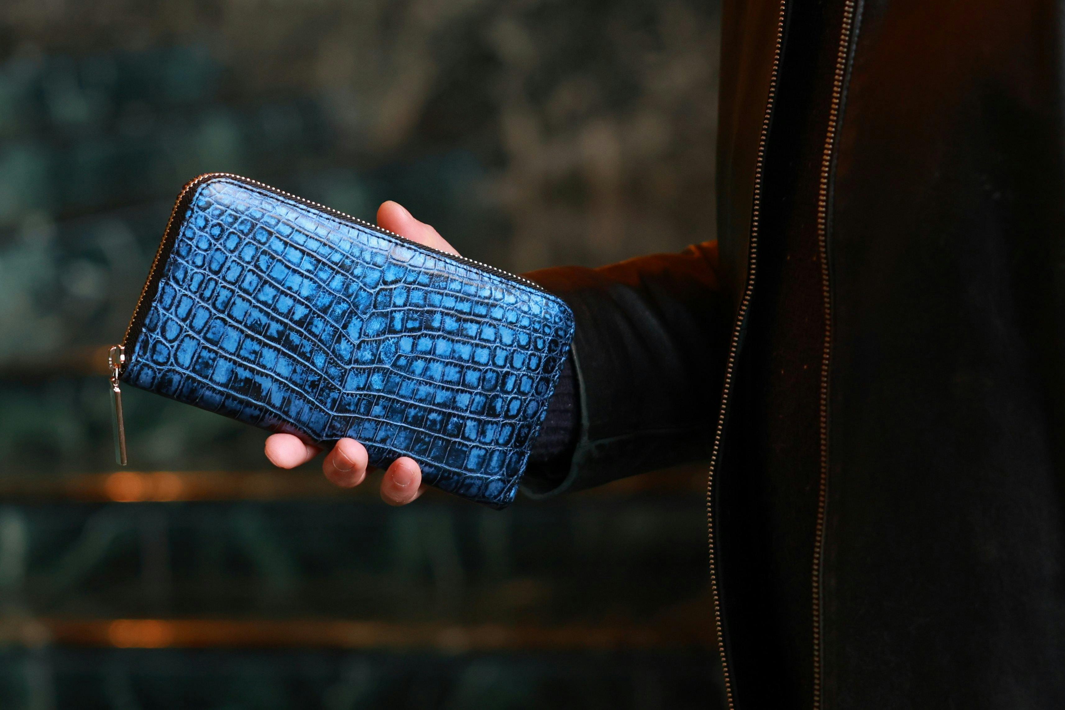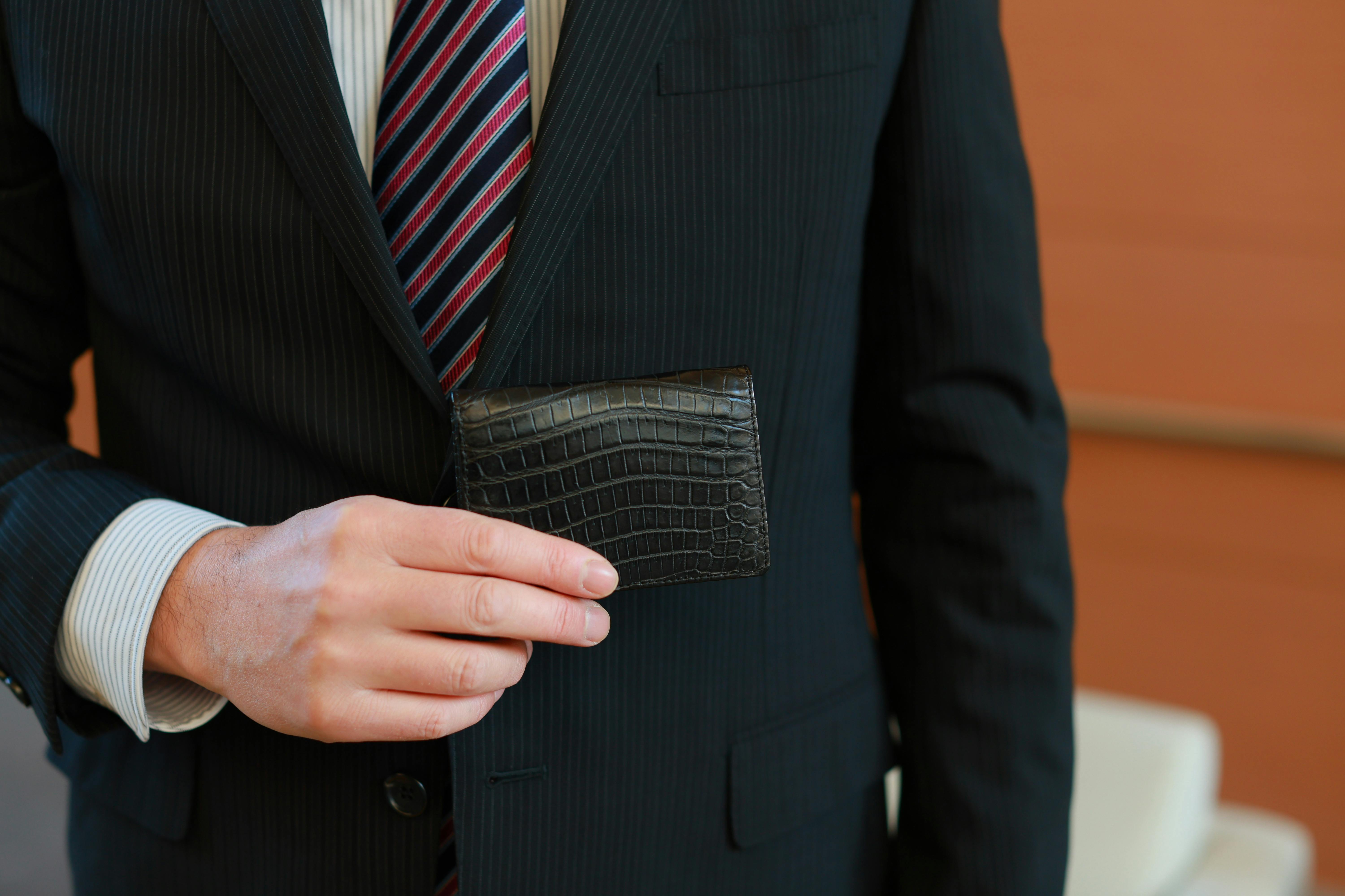 クロコダイルのうろこ模様に配慮した裁断をすることにより、お財布としての品格を高めてくれます。