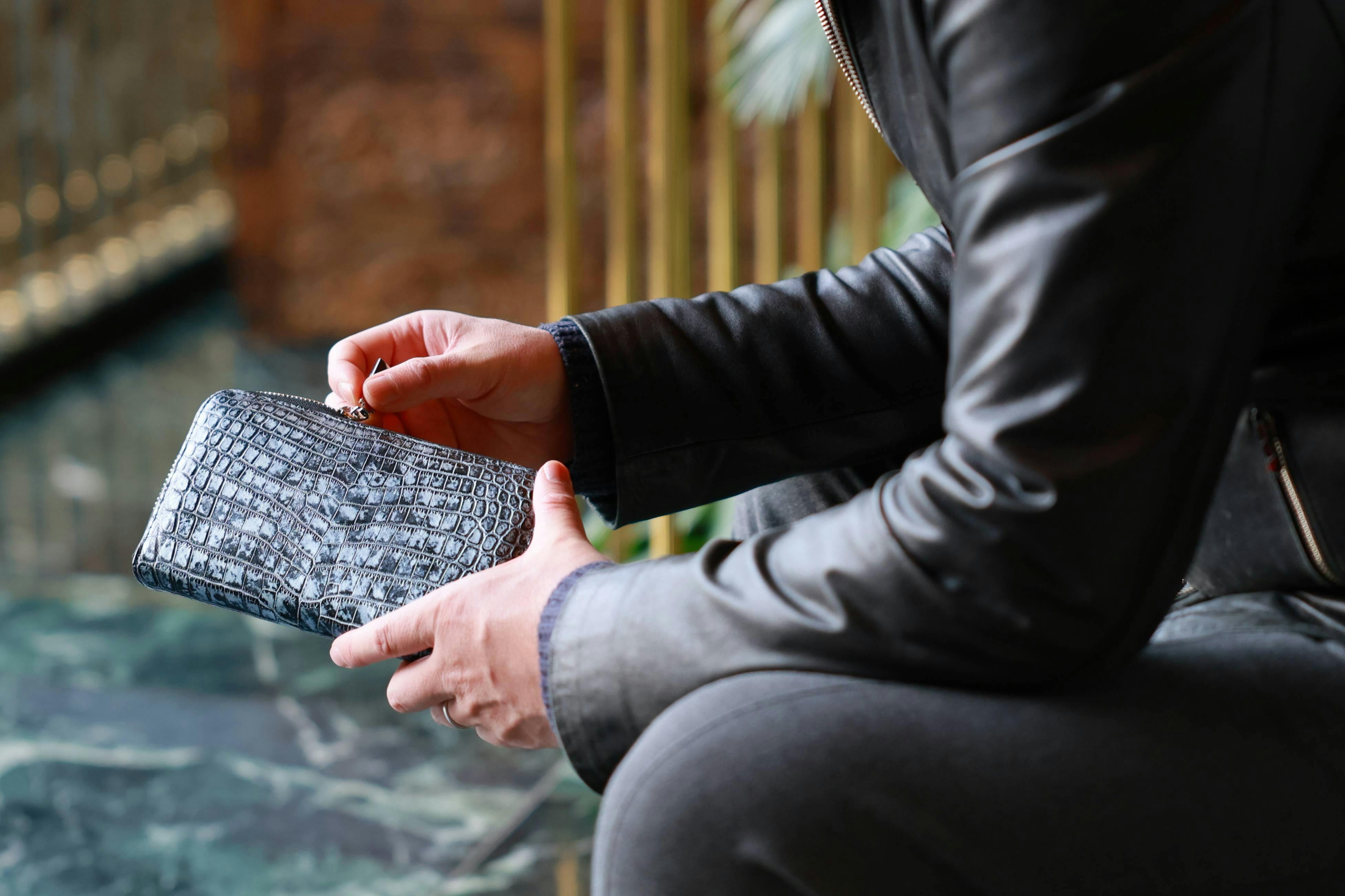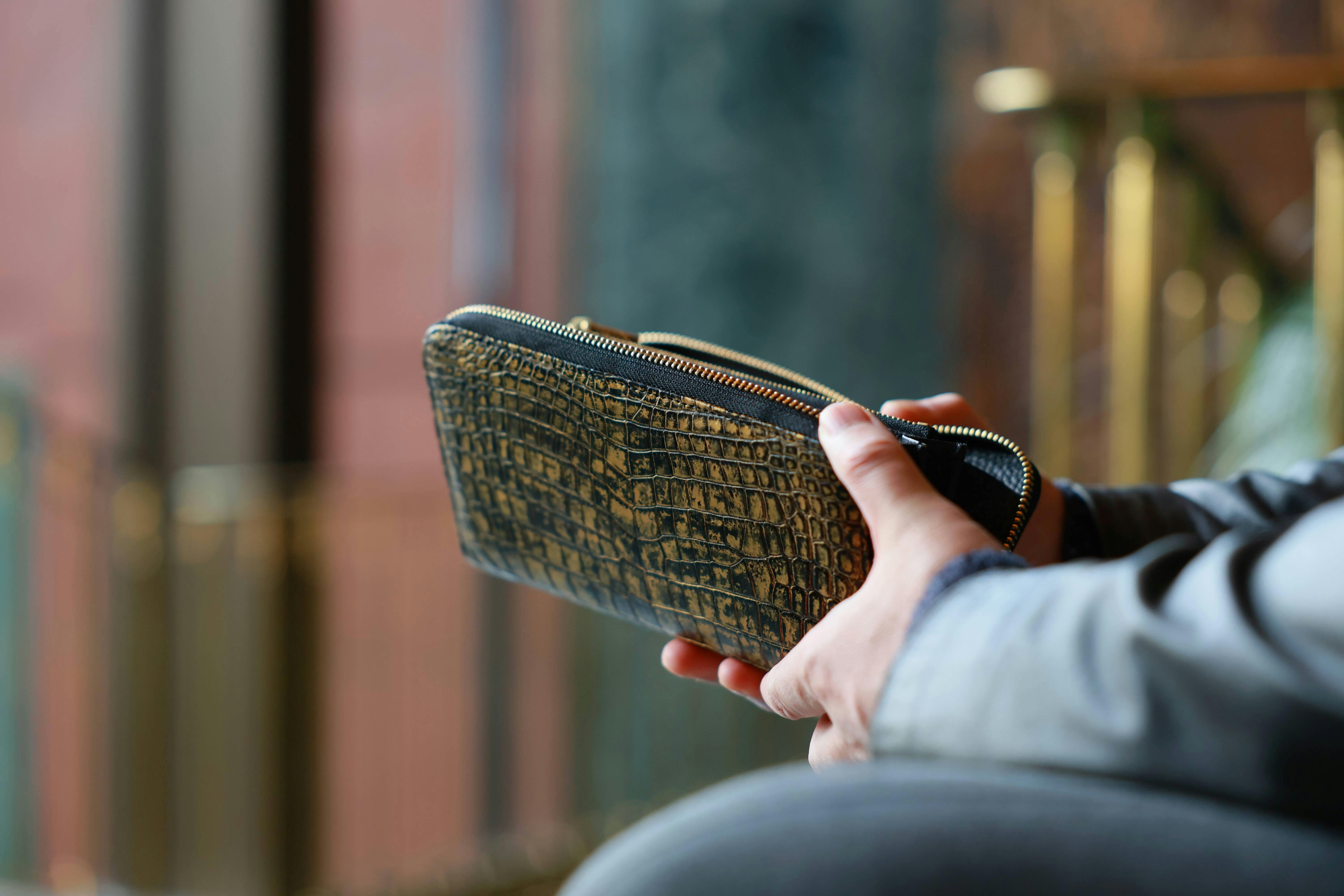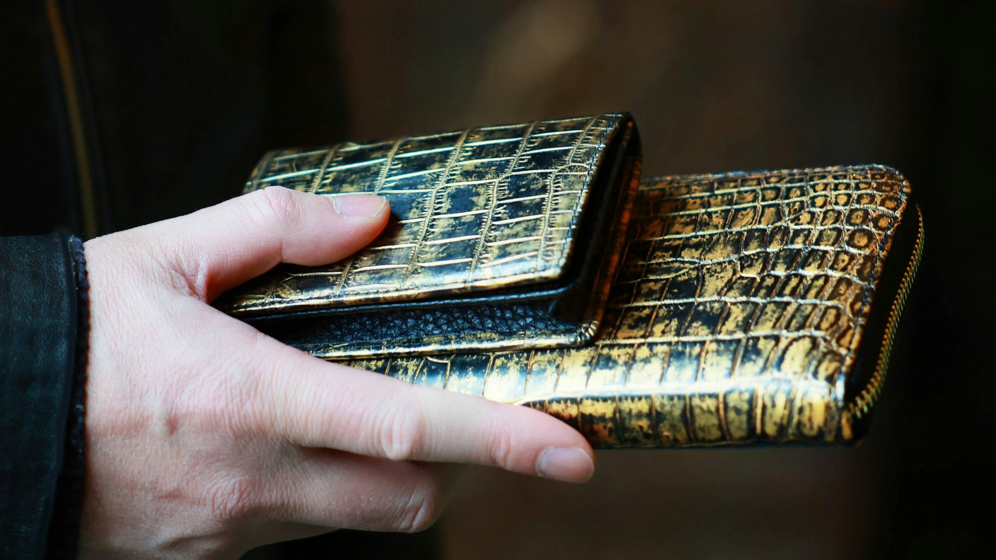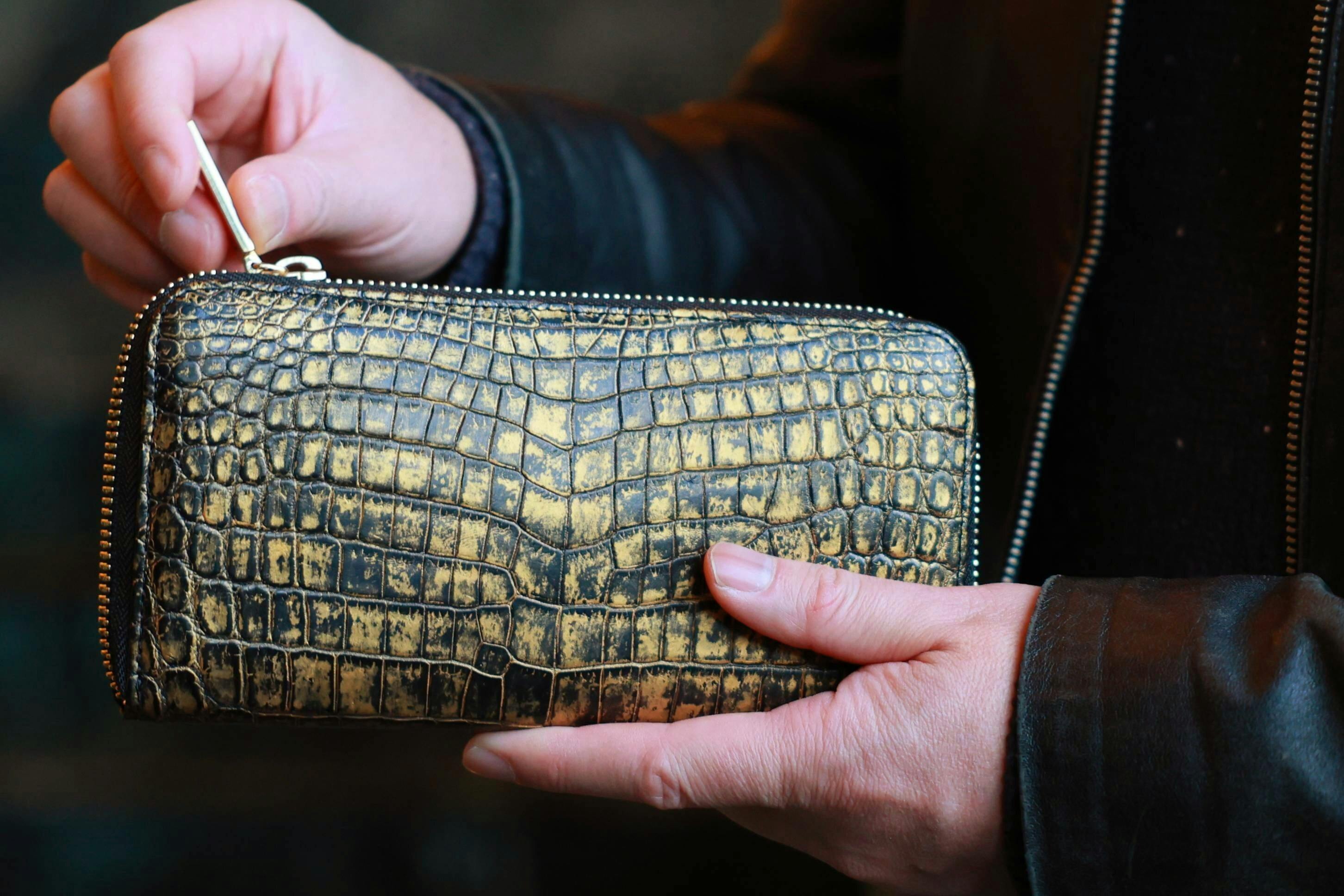 クロコダイルのうろこ模様に配慮した裁断をすることにより、お財布としての品格を高めてくれます。