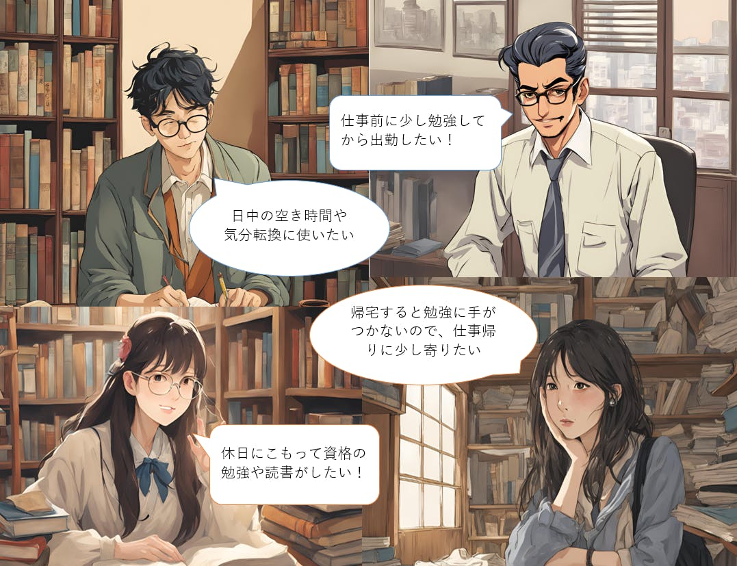 「帰宅すると勉強に手がつかないので、仕事帰りにちょっと寄りたい。」