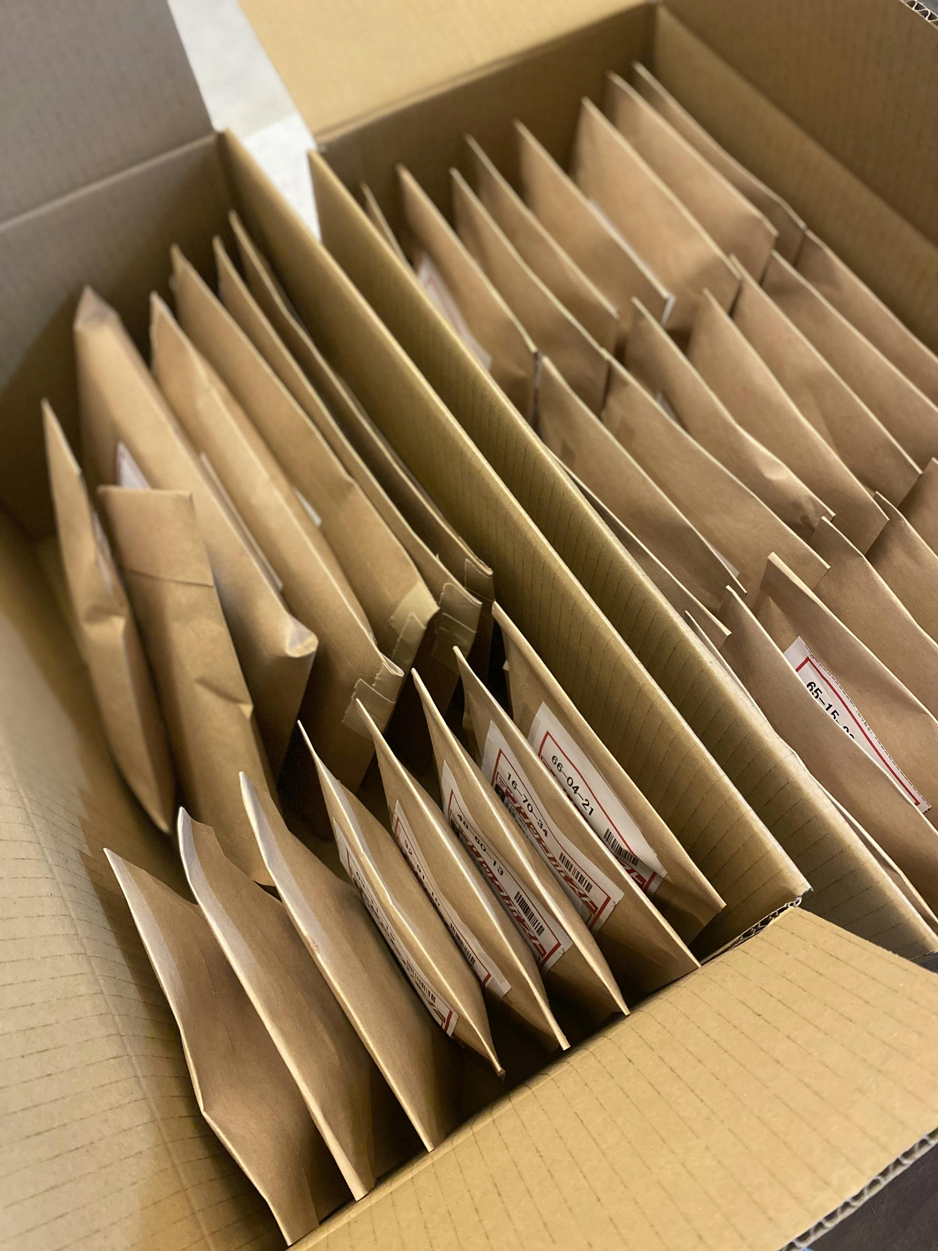 現在、かるたの梱包・発送作業を進めており、全体の約半分ほどが完了しております。