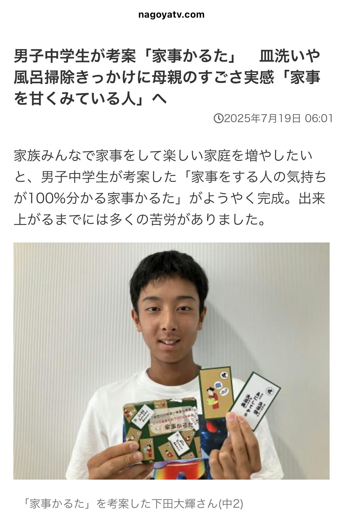 2025/07/19 18:00以前取り上げていただいた名古屋テレビさんに、かるた完成までの過程をあらためて取材していただきました!その様子が、本日WEB記事として配信されています。そして…ついに販売サイトもオープンしました!たくさんの方にご協力いただいて形になったこのかるたが、必要としてくださる方に届くと嬉しいです。ご興味のある方は、下記のサイトよりぜひチェックしてみてください!引き続き、どうぞよろしくお願いいたします!◇メーテレWEB配信:https://www.nagoyatv.com/news/?id=030898◇購入サイトはこちら:https://kajikaruta.my.canva.site/ もっと見るすべてのリターンの発送が完了致しました!