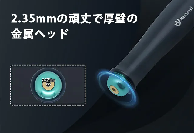 耐摩耗性および酸化に強い厚壁の金属製ヘッドが特徴です。