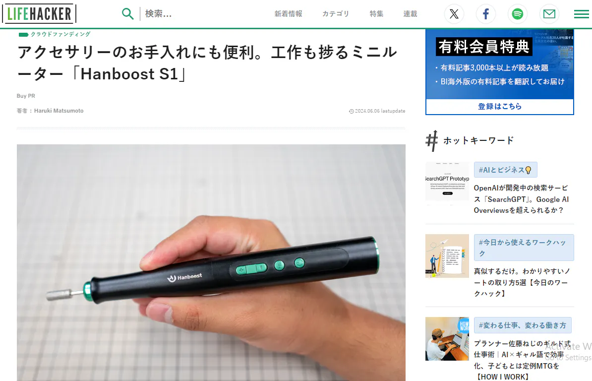 6月6日、 Lifehackerで「Hanboost S1」を紹介して頂きました。