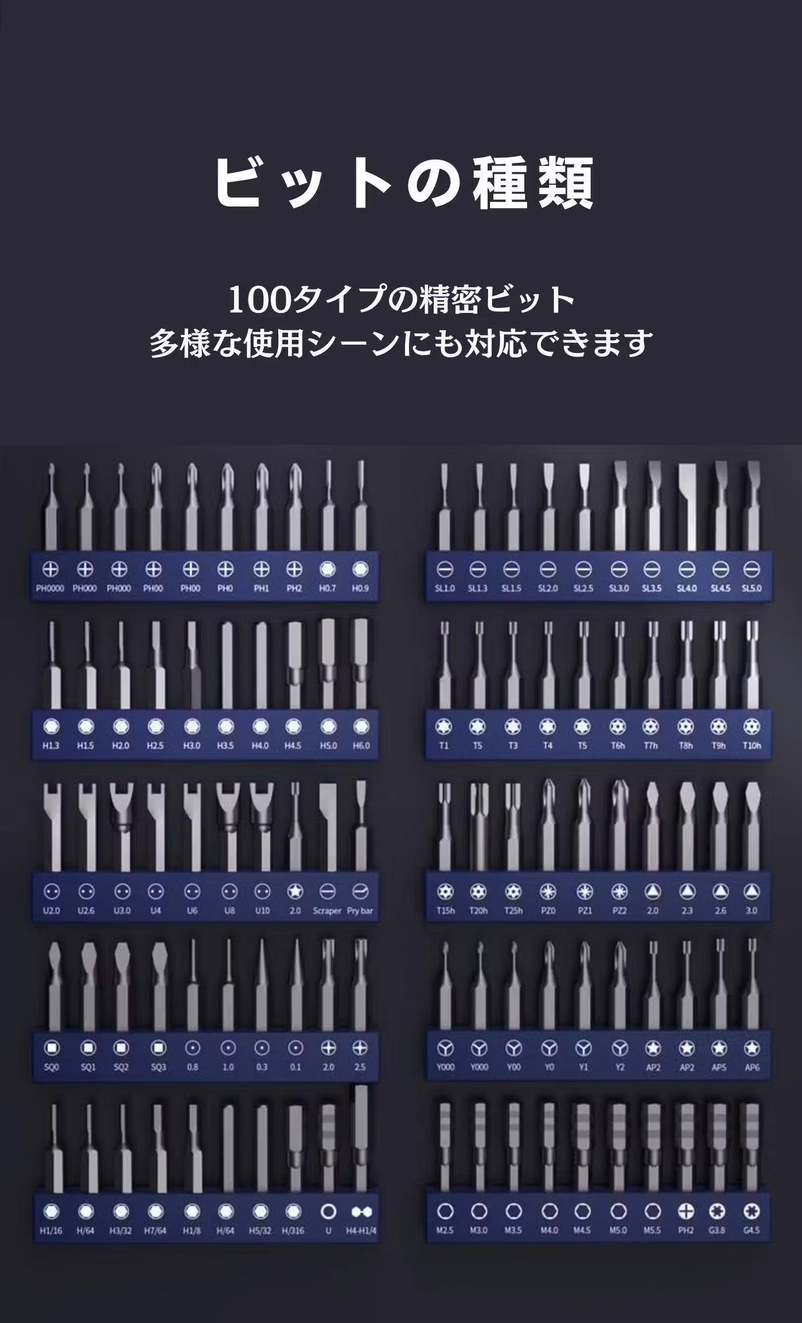 ① 100種類の高精度ビット + 20種のマルチツール付属。