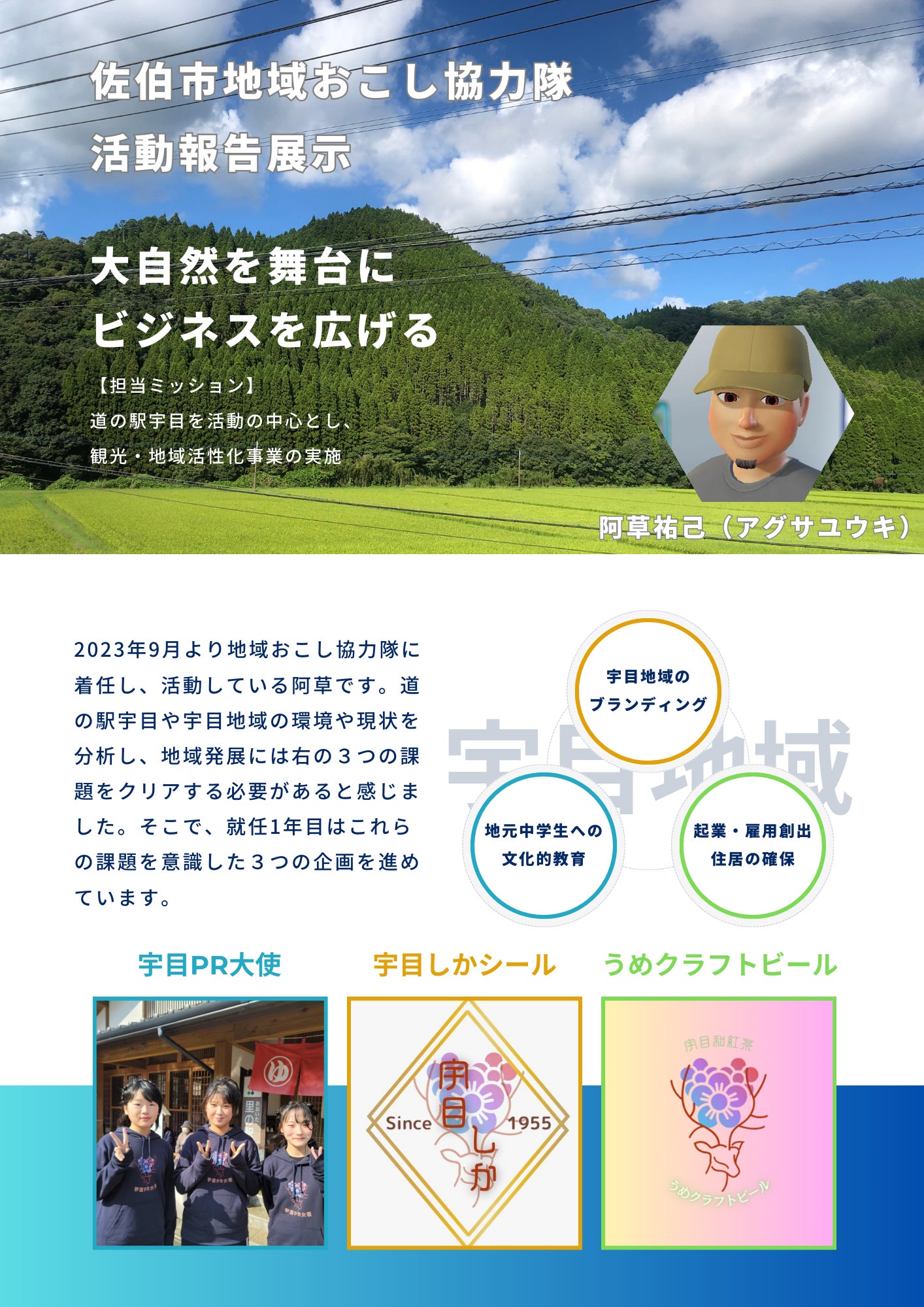 大分県佐伯市地域おこし協力隊、宇目地域担当の阿草祐己(あぐさゆうき)と申します。