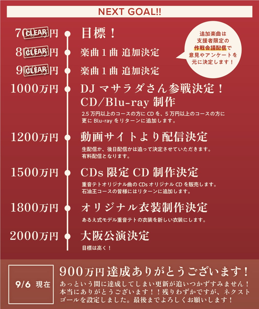 クラファン終了まで1ヶ月切っているし、チケットも埋まってきているので、できたらいいな〜!程度のネクストゴールではありますが、達成したらすごい嬉しいです!