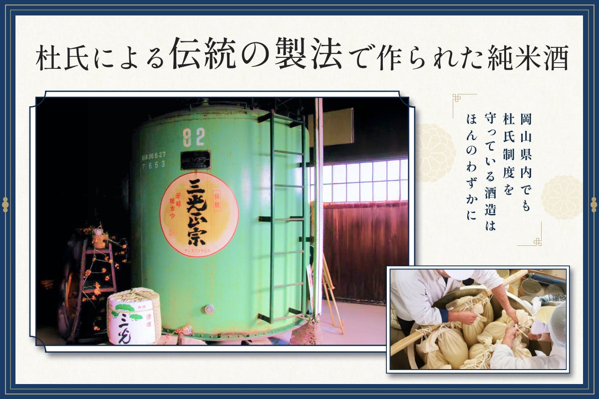 近年、日本国内で季節の杜氏制度を維持している酒蔵は非常に少なく、岡山県内でもわずか数蔵。熟練の杜氏のもと、三光正宗は伝統を守りながらも革新を続けています。