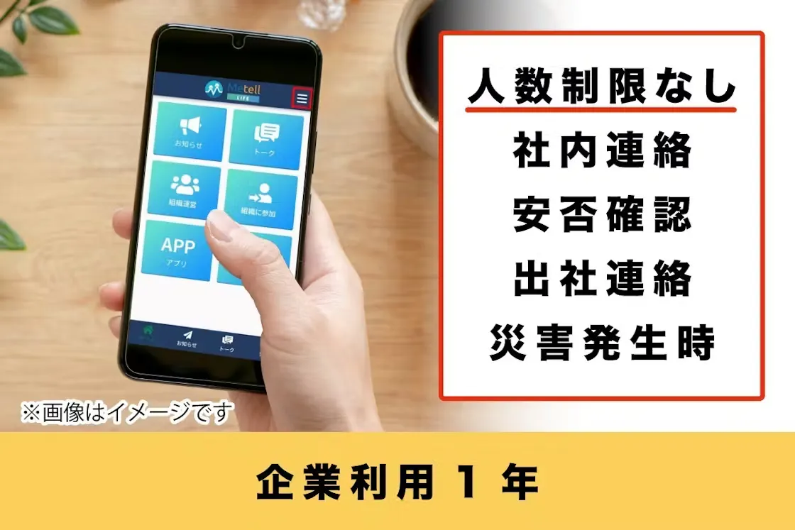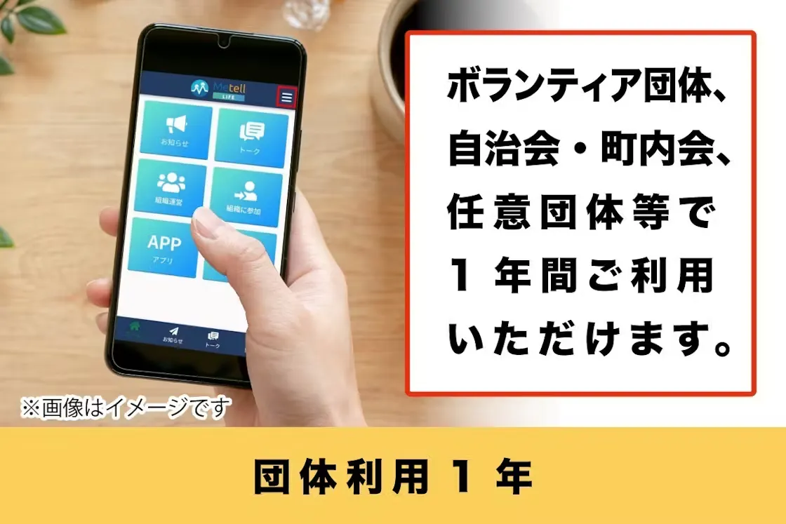 地域で見守り・安否確認アプリ「Metell LIFE(ミテルライフ)」を1年間、企業利用できる権利です。利用人数に制限はありません!