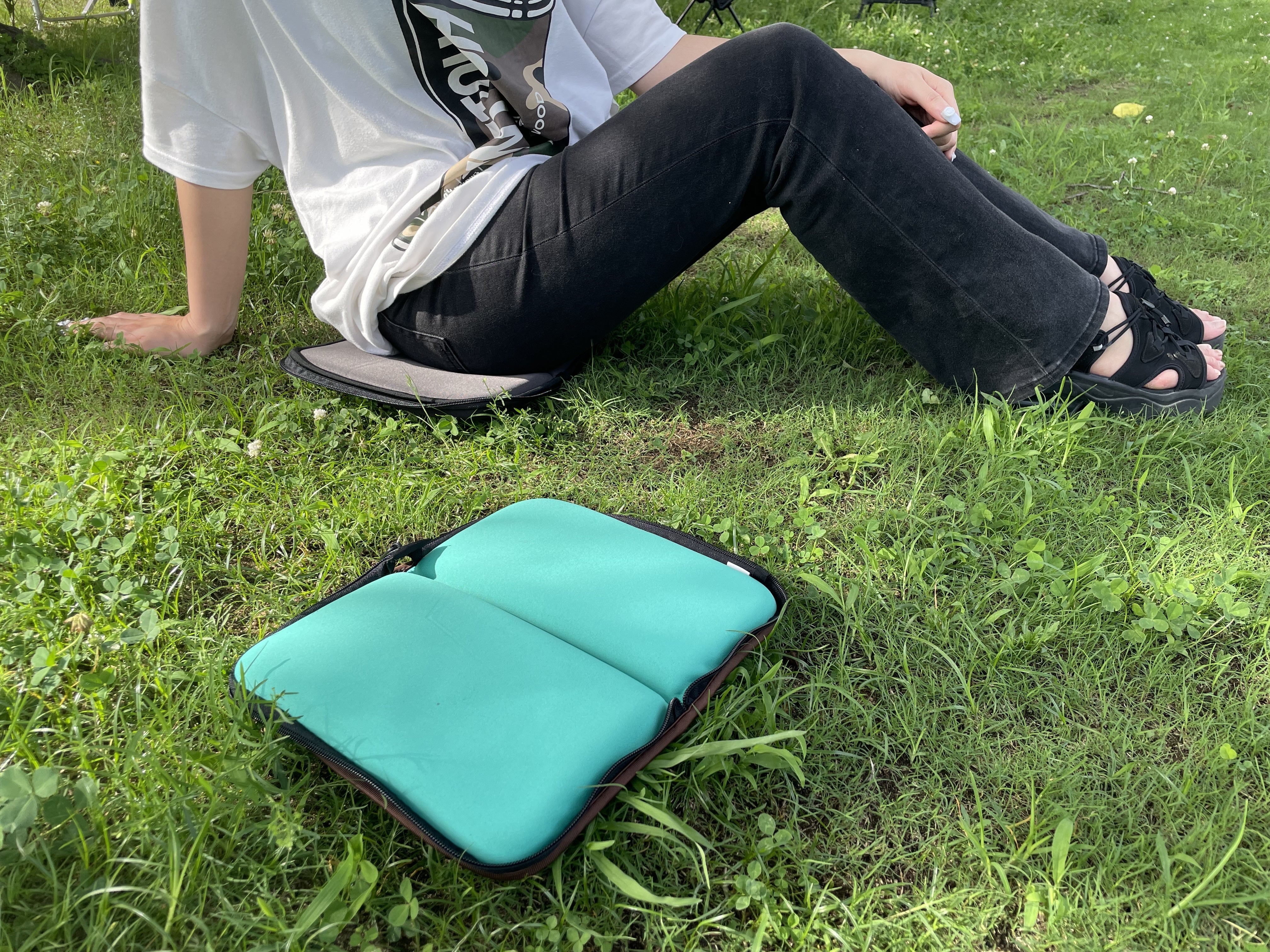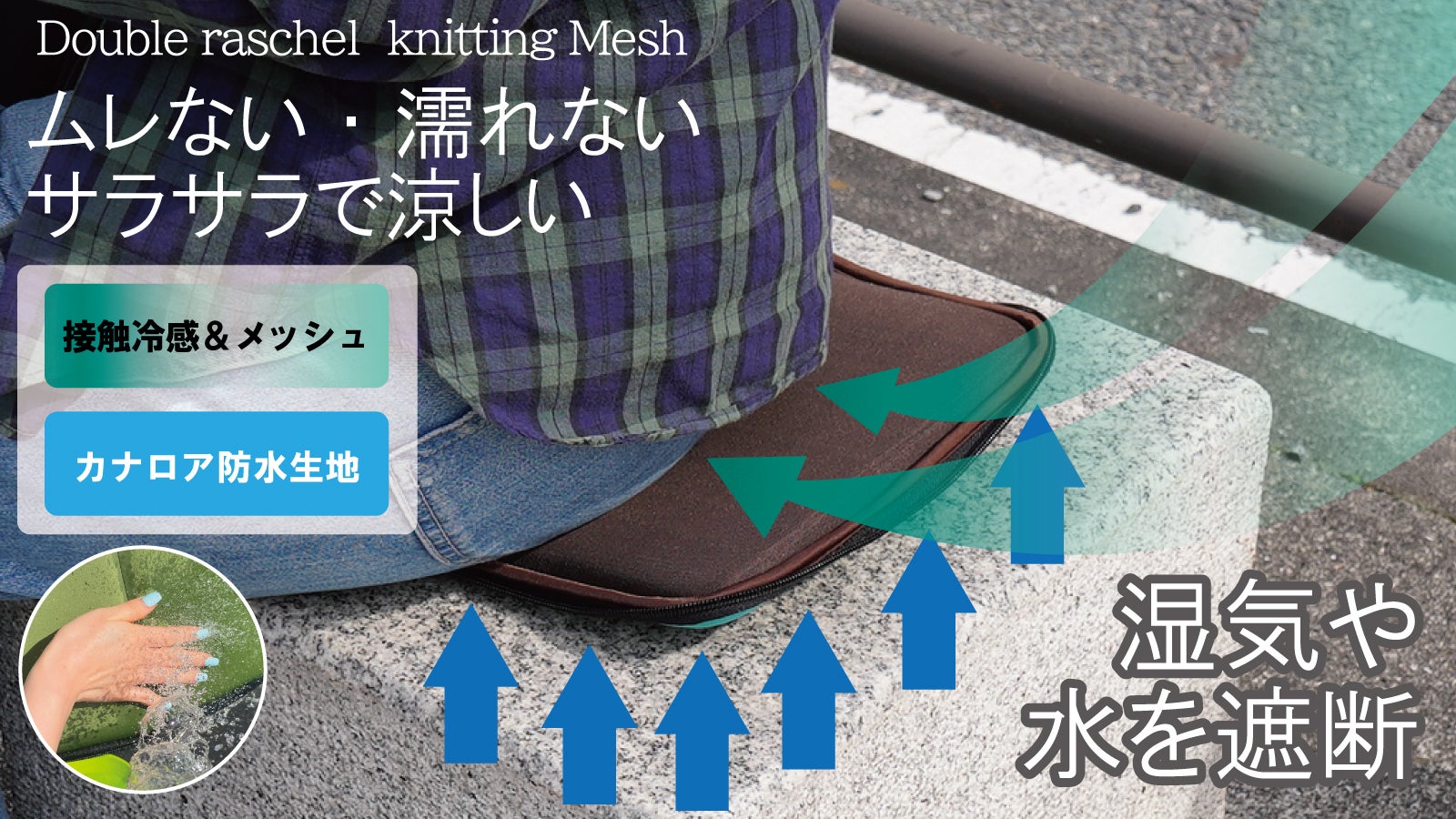 咄嗟にどこで使っても、防水面で地面から上がる水分を遮断し、ムレずにいつまでもサラッとした座り心地を実現します。