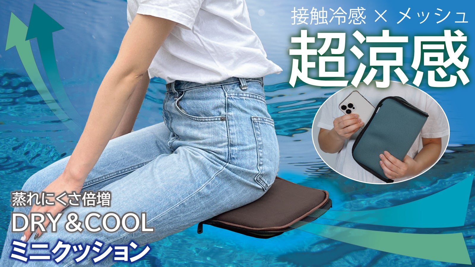 CARESTARの【防水&冷感 折りたたみミニクッション】は肉厚な3Dメッシュ素材の採用で抜群の通気性が座っているときの蒸れを軽減!さらに接触冷感生地の使用で座ったときにヒンヤリ感もうれしいポイント!