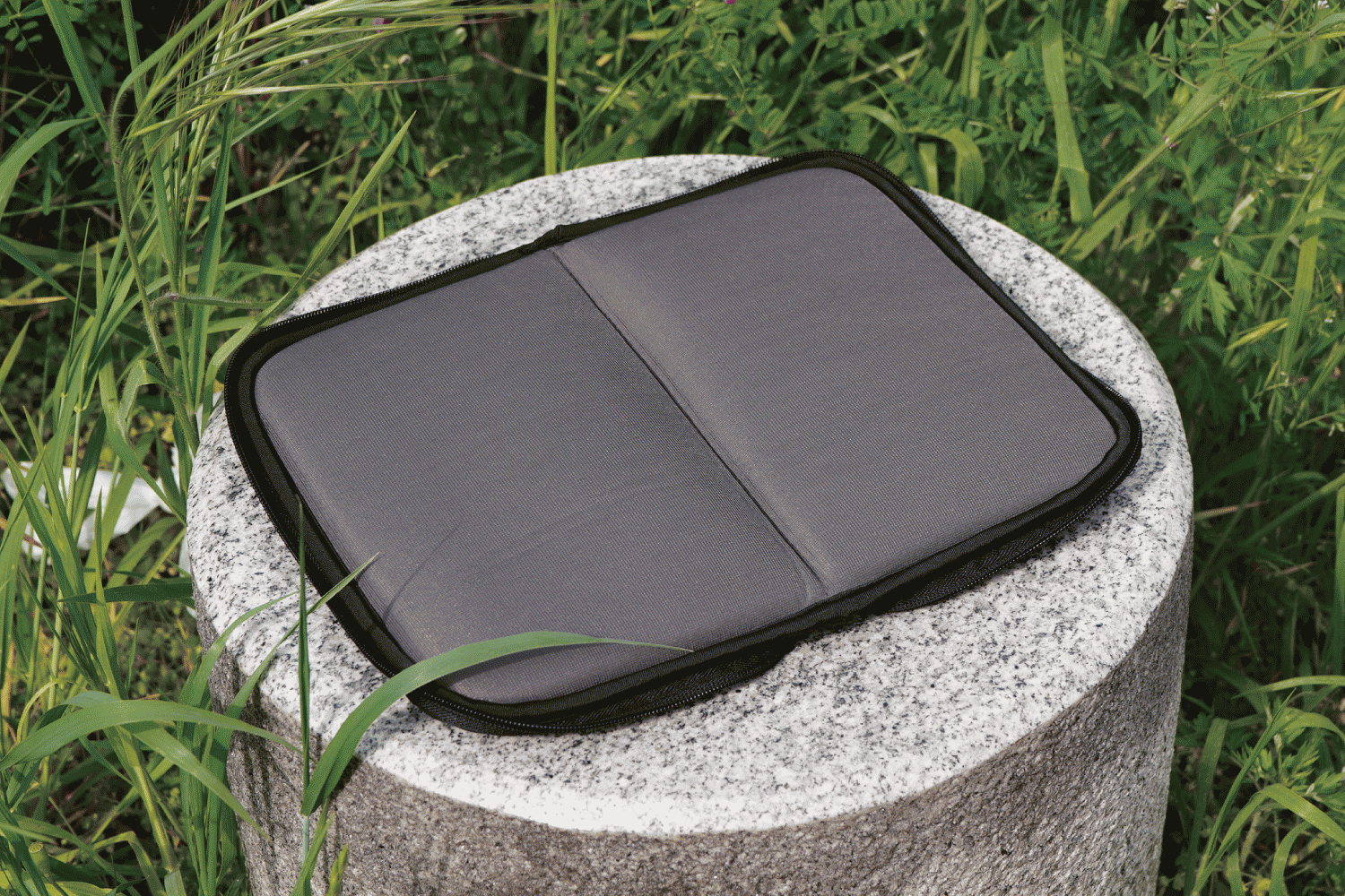 従来の2つ折りクッションの「重い」ことによる使いにくさを軽減。ほんとうに軽いからいつも持ち歩きできて使い込みが可能。