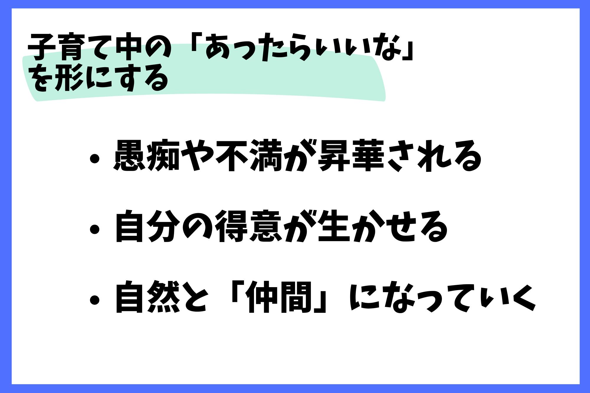 「日々の子育てを助け合う」ことを目的としたコミュニティに参画する、という仕組みです。この仕組みがあれば、帰宅しても「つながり」を感じられるのではないでしょうか?そのために、子育て共助拠点を作りたい!それが今回ご支援いただきたいプロジェクトです!