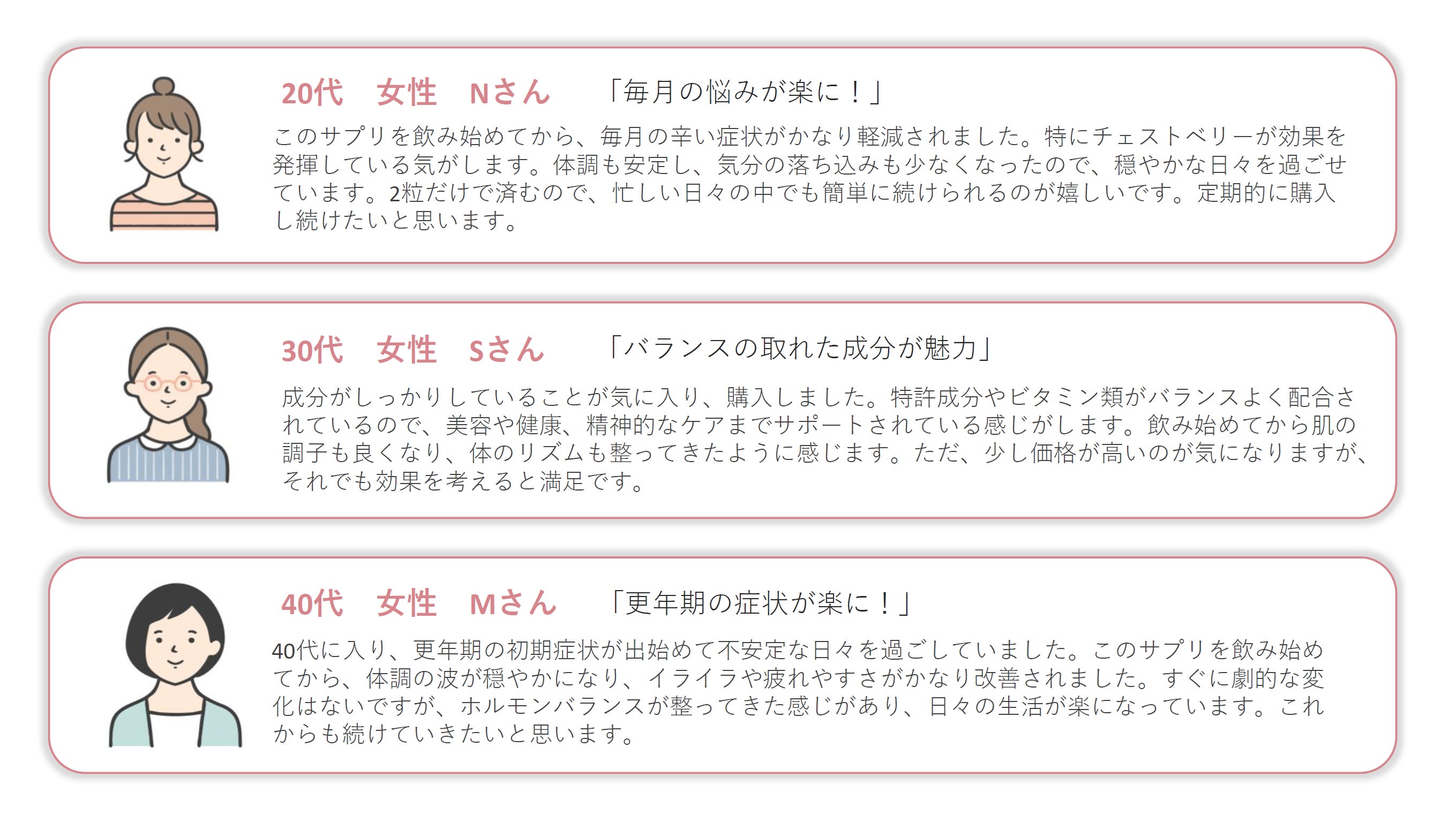 女性が周期前に感じる不調や不安定な時期に、“日常生活や仕事が困難になることを経験した開発者の想い”から生まれました。