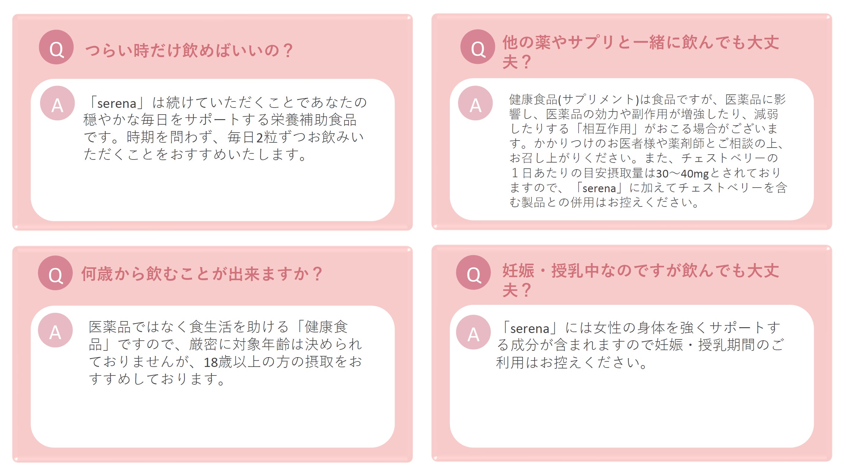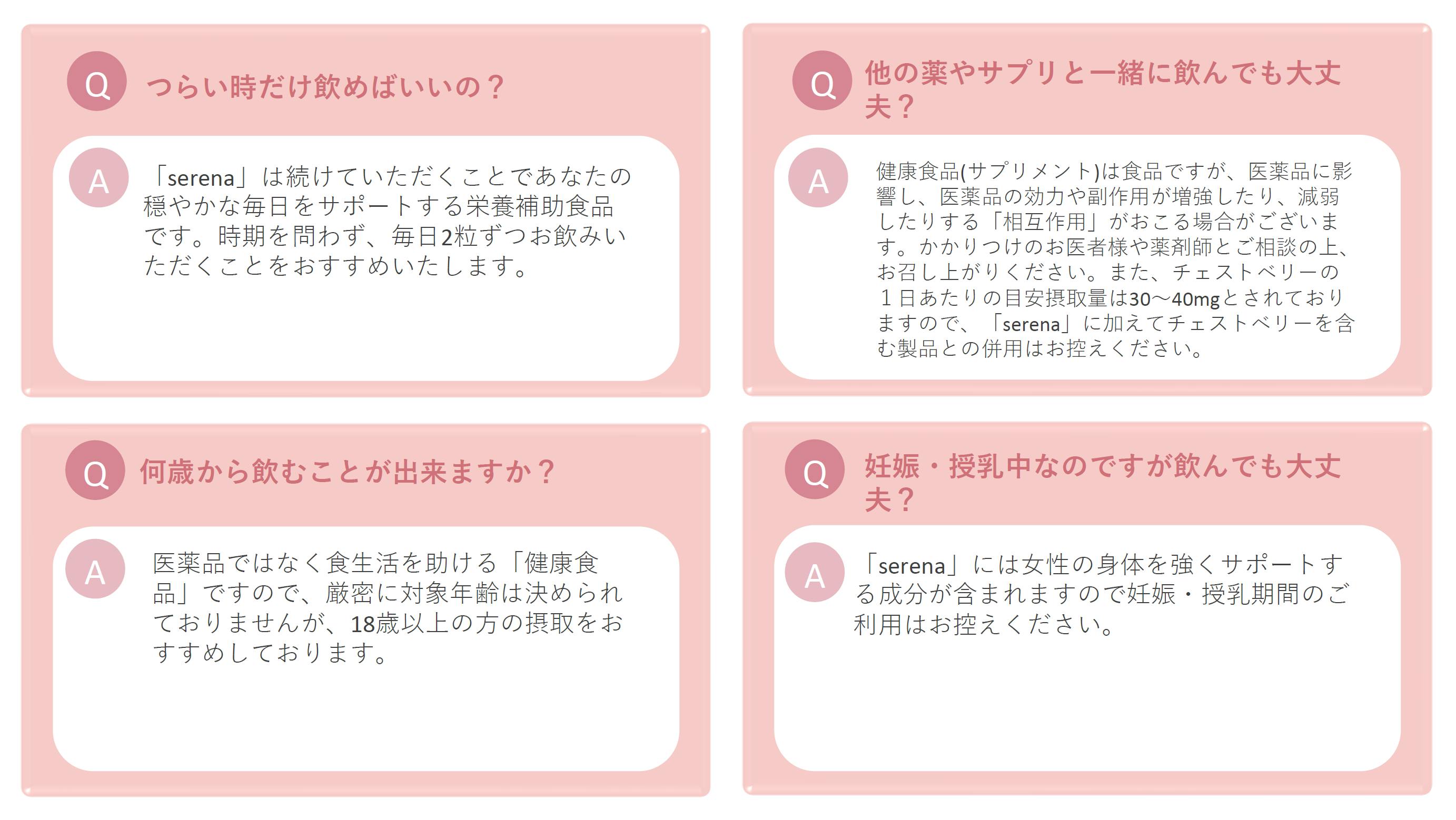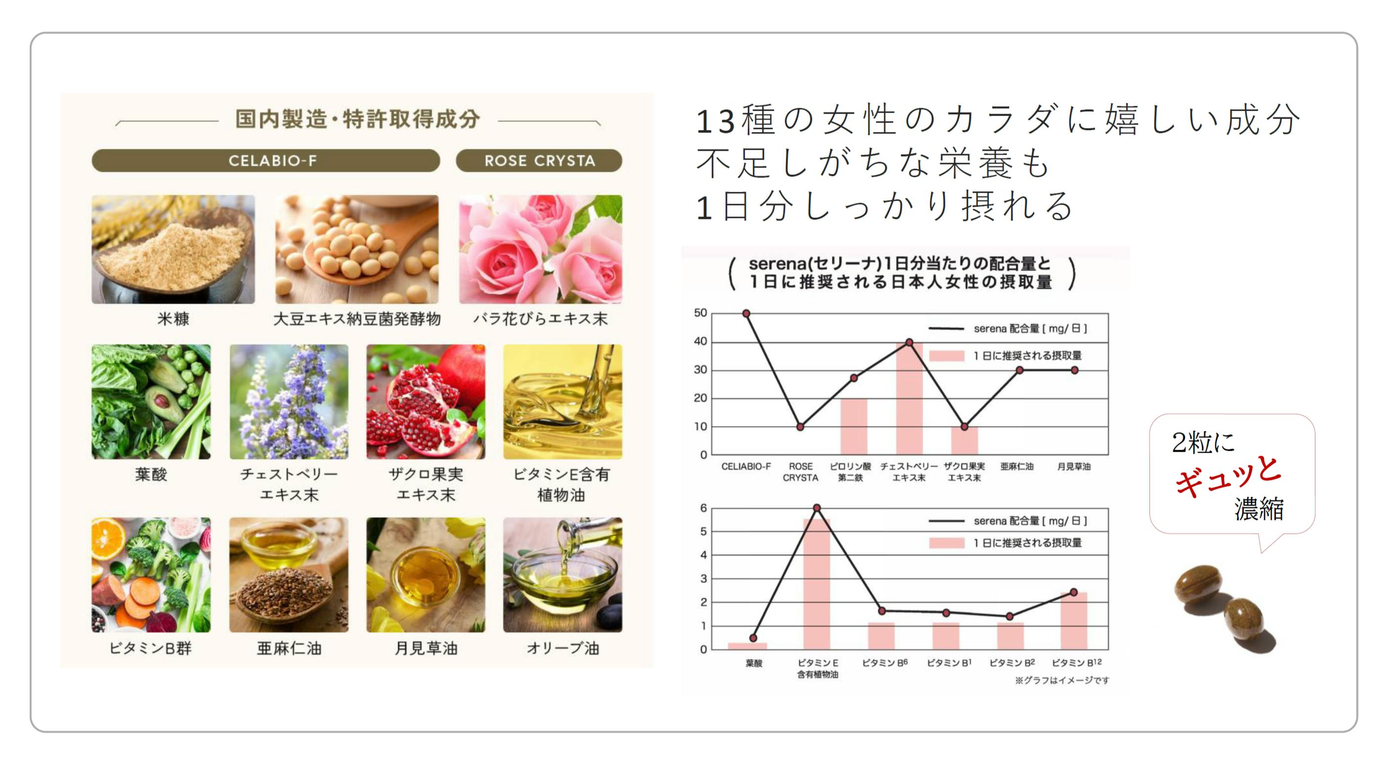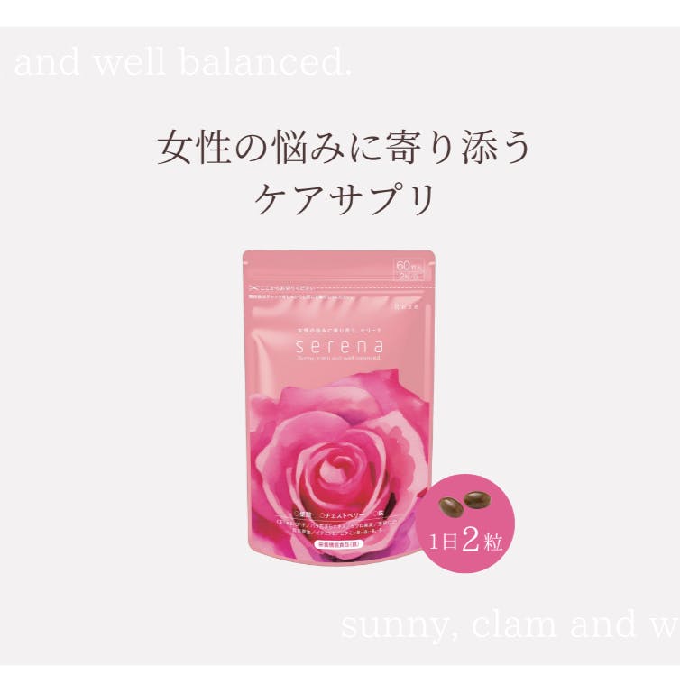 「serena」は女性が毎日晴れやかに、生き生き過ごせるようサポートするサプリメントです。