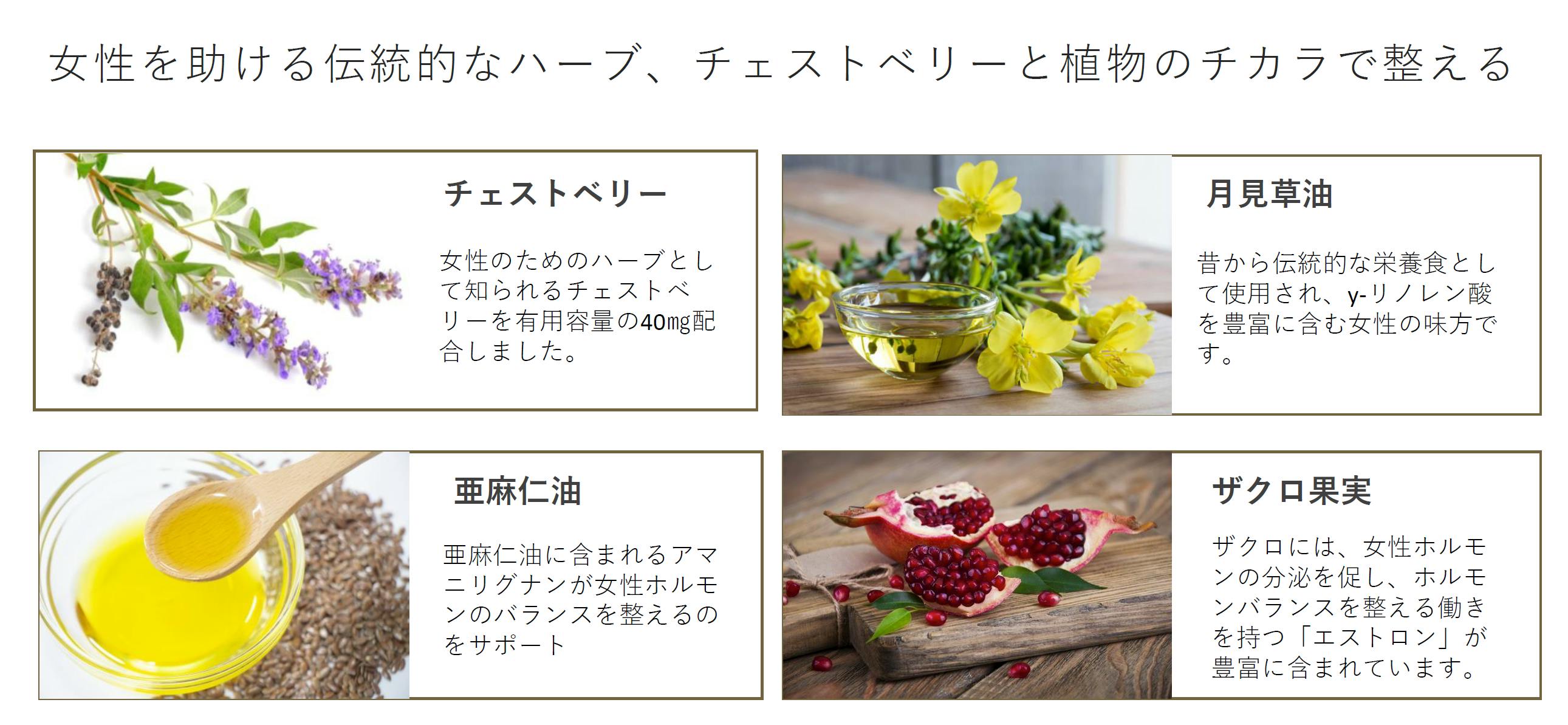 - ・女性特有のリズムに配慮した成分がバランスよく配合されています。