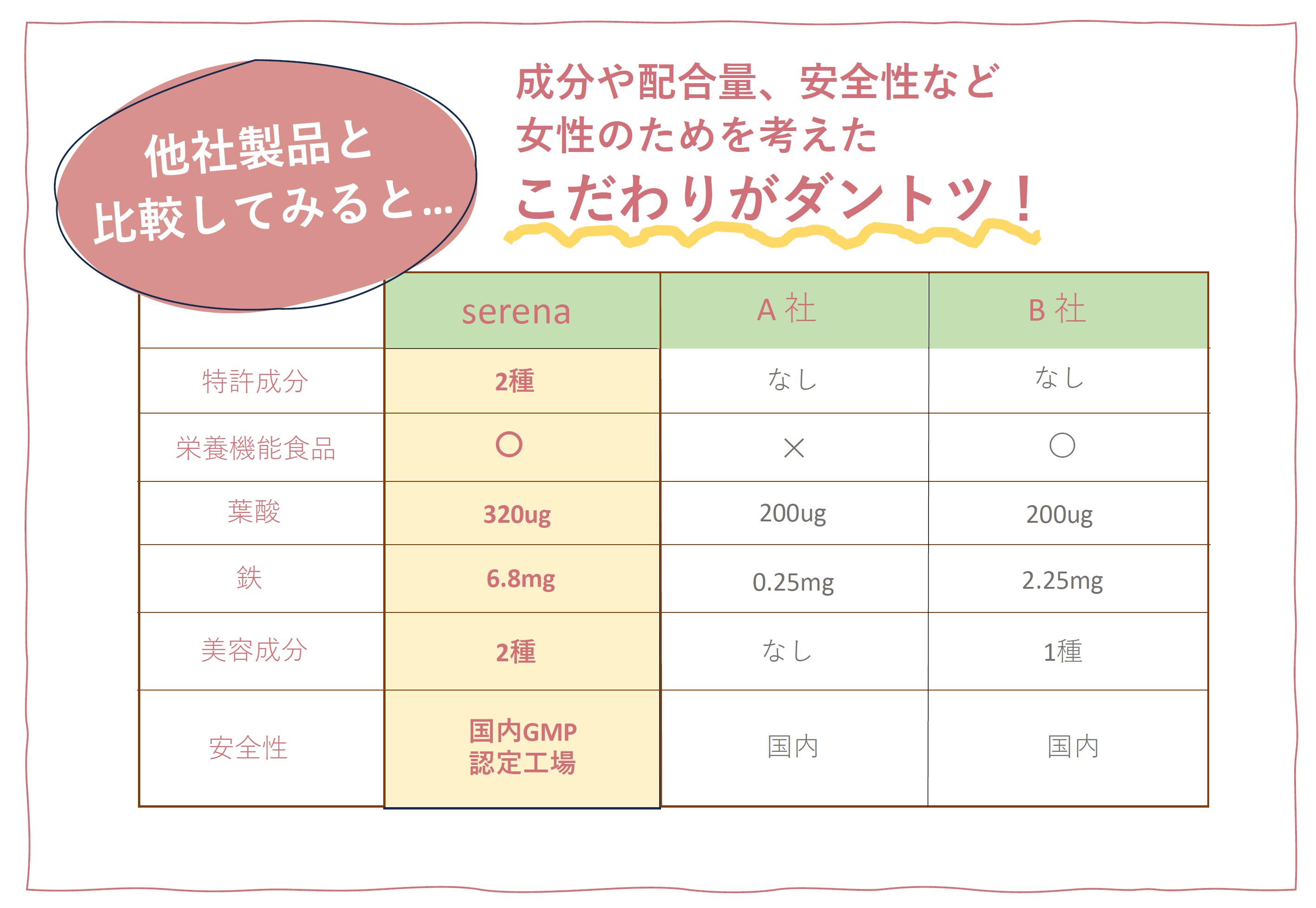 serenaは専門家と成分の厳選や配合量、バランスなどたくさんの打ち合わせを重ね、つくられています。