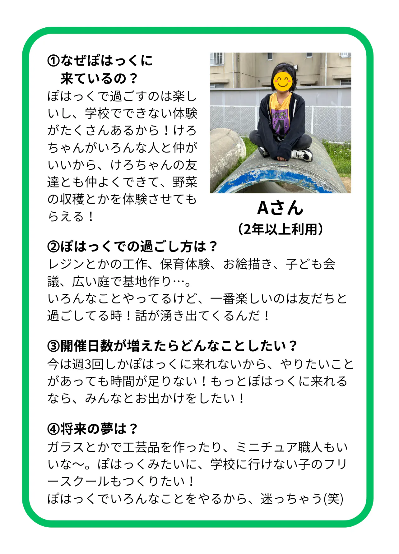 そのために、現在開催しているフリースクールの