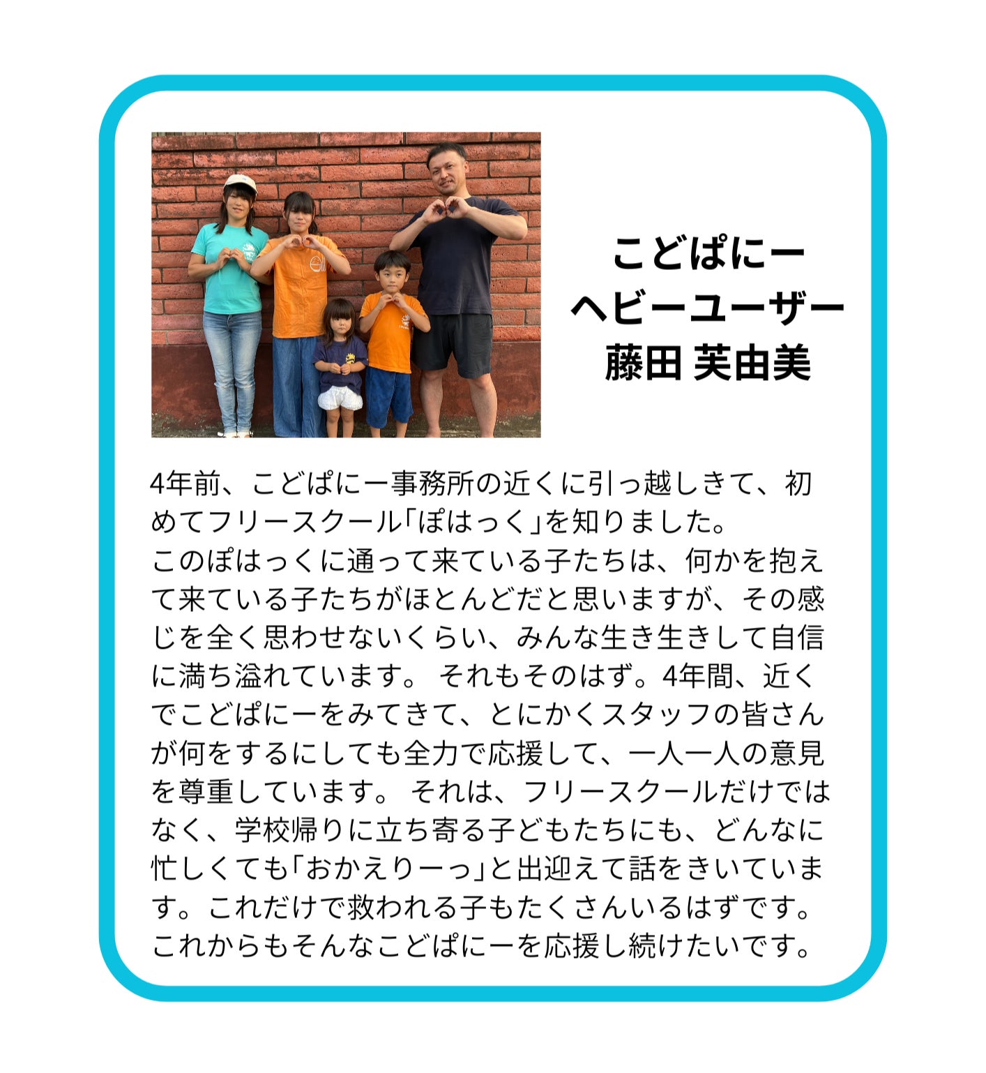 すべての子どもが“ありのまま”でいられる社会になるよう、これからも活動していきますので、みなさんのお力を貸してください。