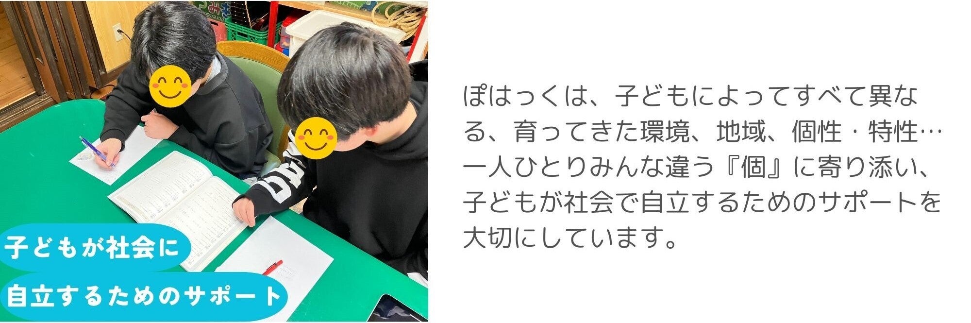 ・対象:6歳~18歳※社会的自立へのサポートを必要としている子どもは対象年齢を過ぎていても利用可能です