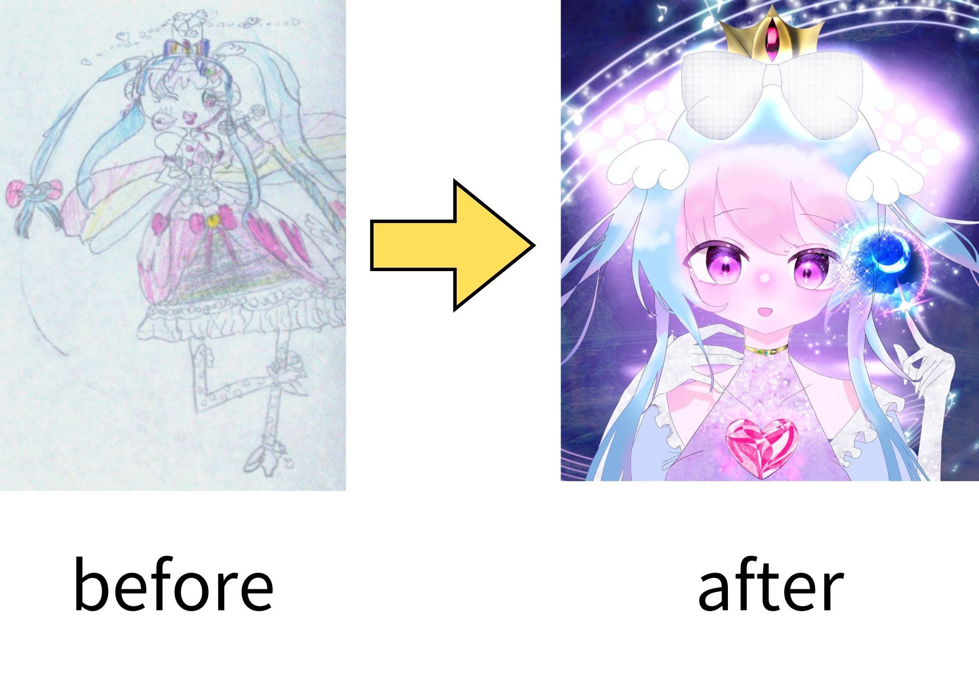 上の画像は、小学二年生の時に描いた絵を久しぶりに発見して、リメイクしたものです!