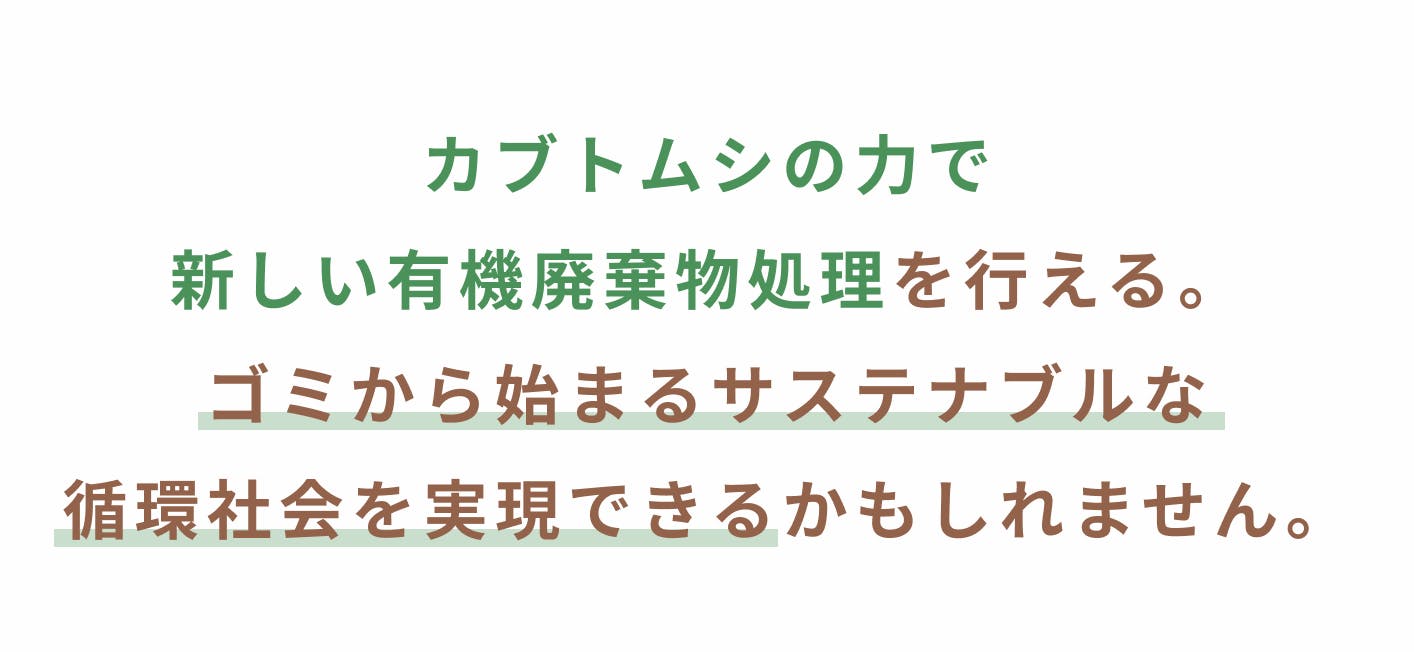 そしてカブトムシの力を使って、地球に優しい形での循環型社会の実現を目指しています。
