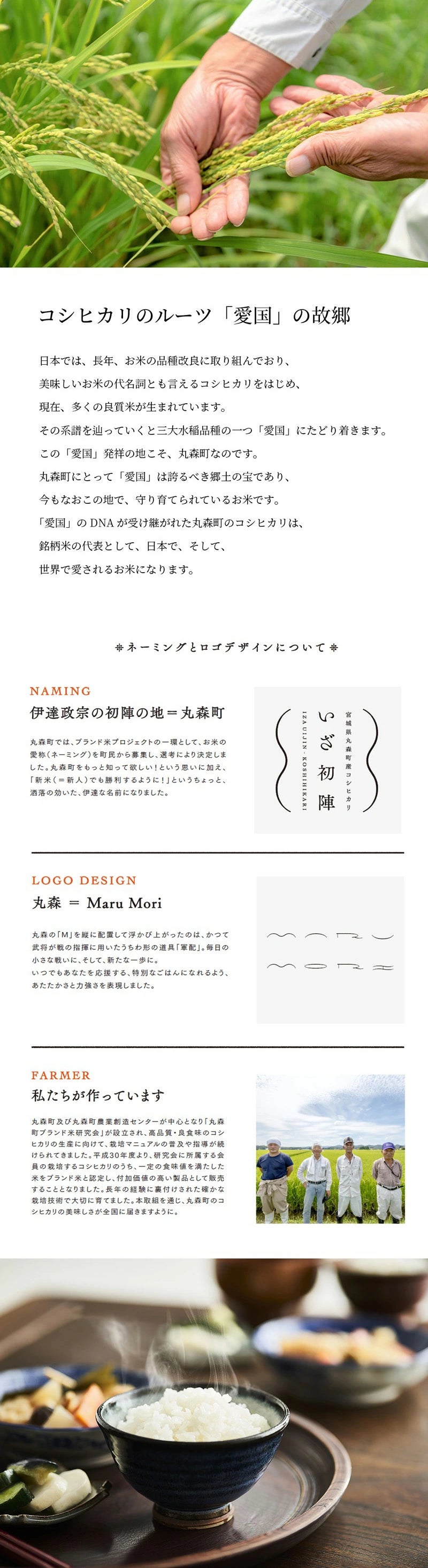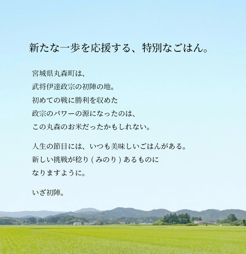 丸森町では長年、多く農家がコシヒカリを育てており、宮城県内においてはコシヒカリ産地として有名です。丸森町内でも腕に自信がある農家が集まり、「いざ初陣」を作っています。