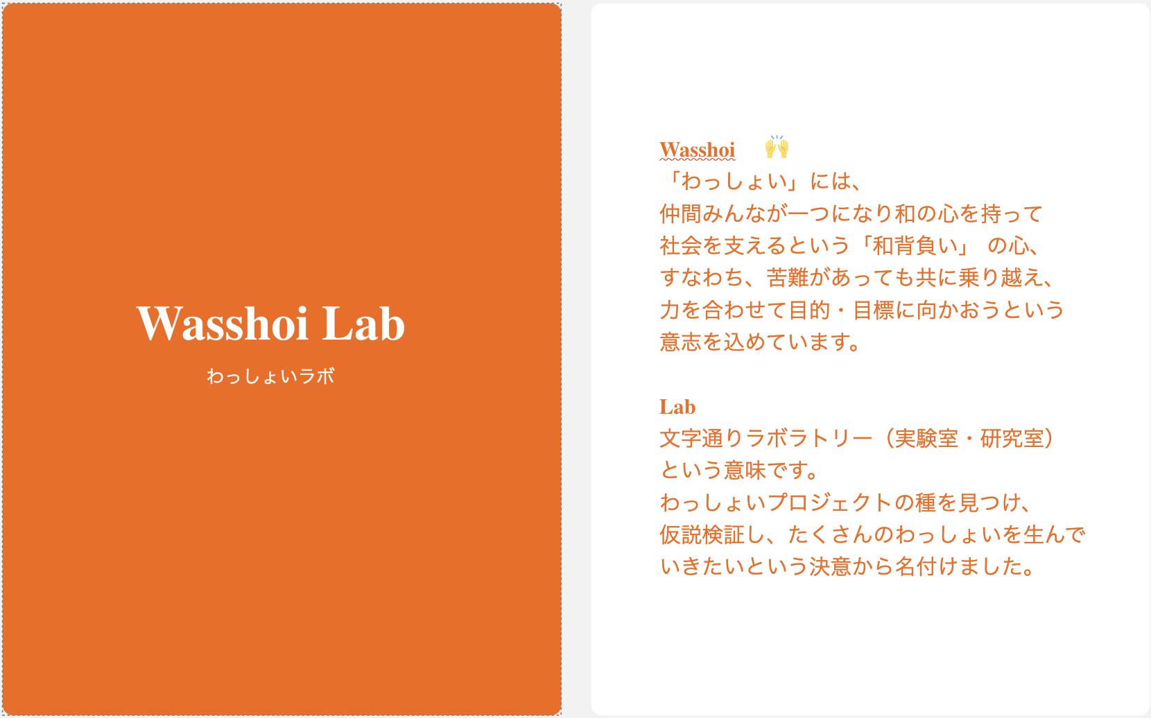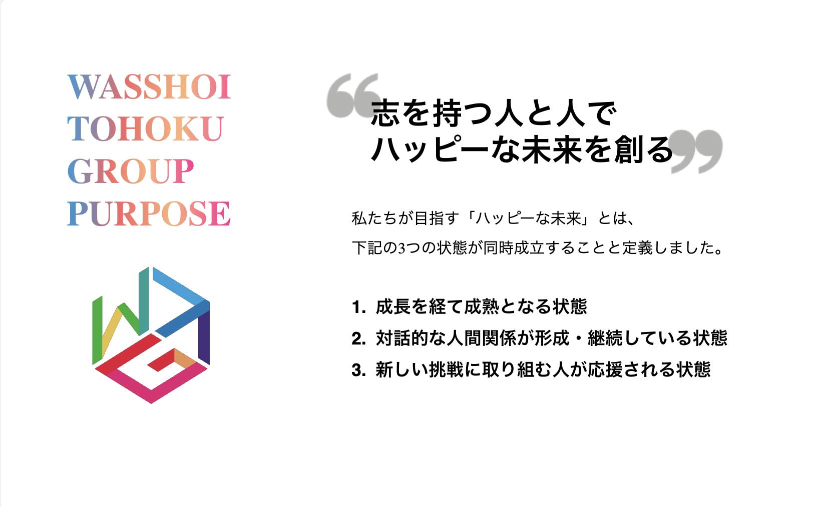 本プロジェクトを運営する株式会社Wasshoi Labは宮城県丸森町に本社を置き、東北を中心に「志を持つ人と人とでハッピーな未来を創る」をグループパーパスにまちづくり、教育、観光、商品開発、社会起業家輩出など分野を横断して、事業を展開しています。