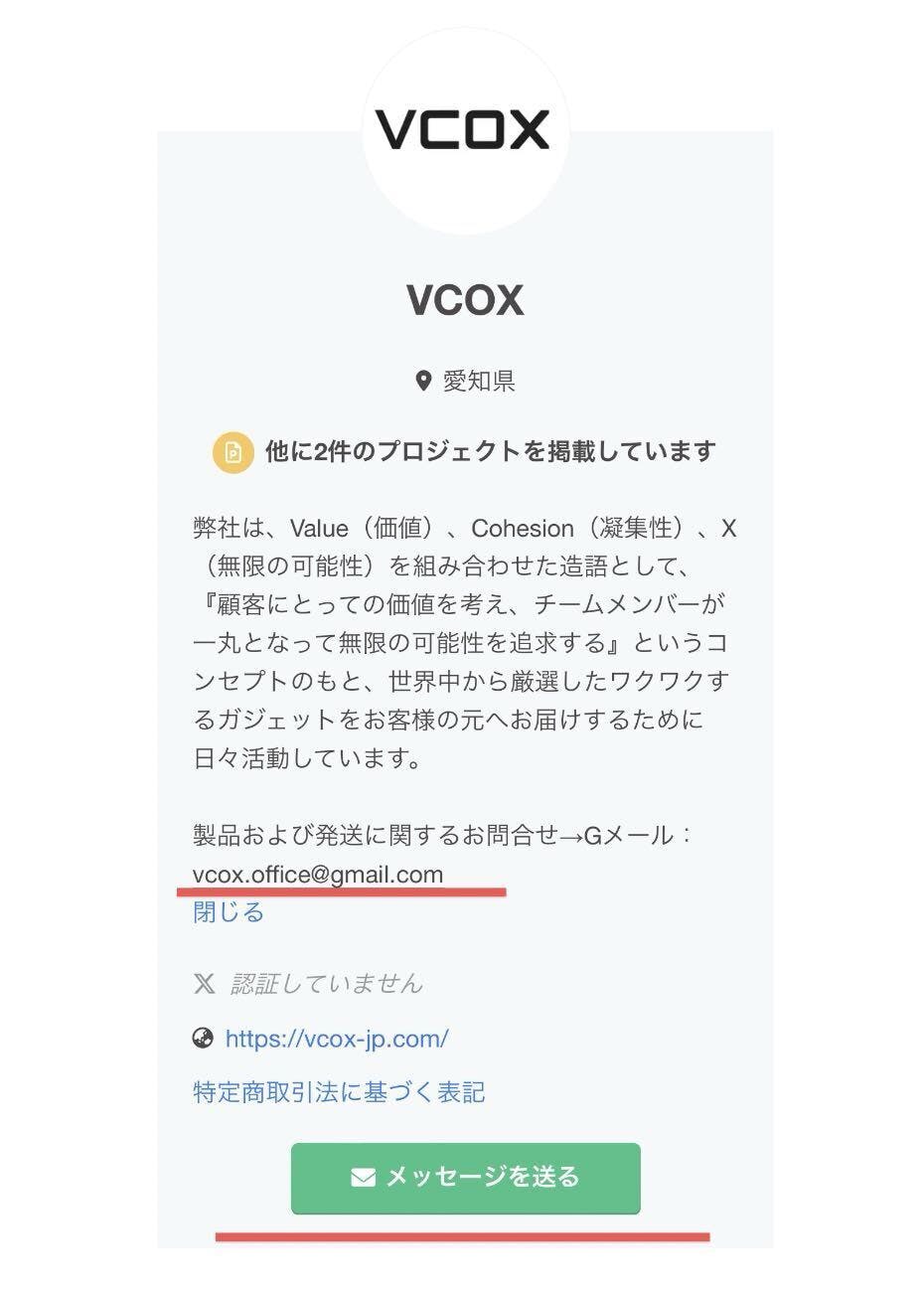 Gメール:vcox.office@gmail.com