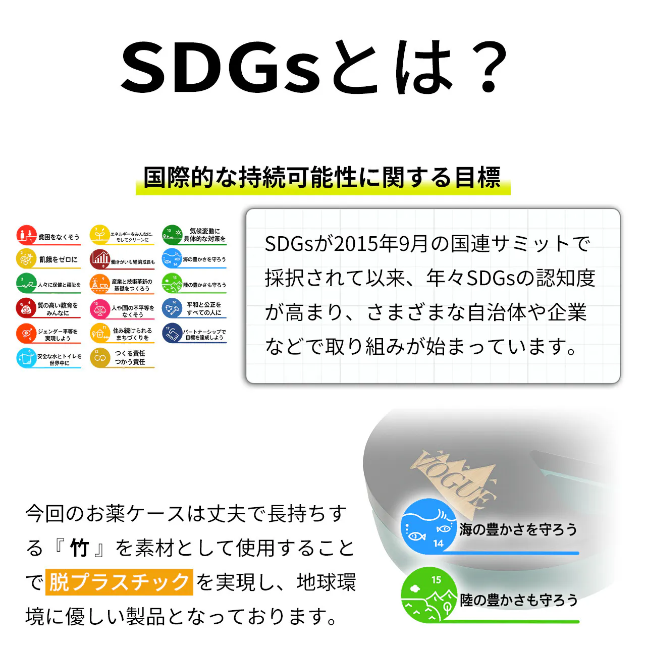 - 1.脱プラスチックを実現した地球環境にやさしいSDGSなお薬ケースです。素材が竹なのでとても丈夫