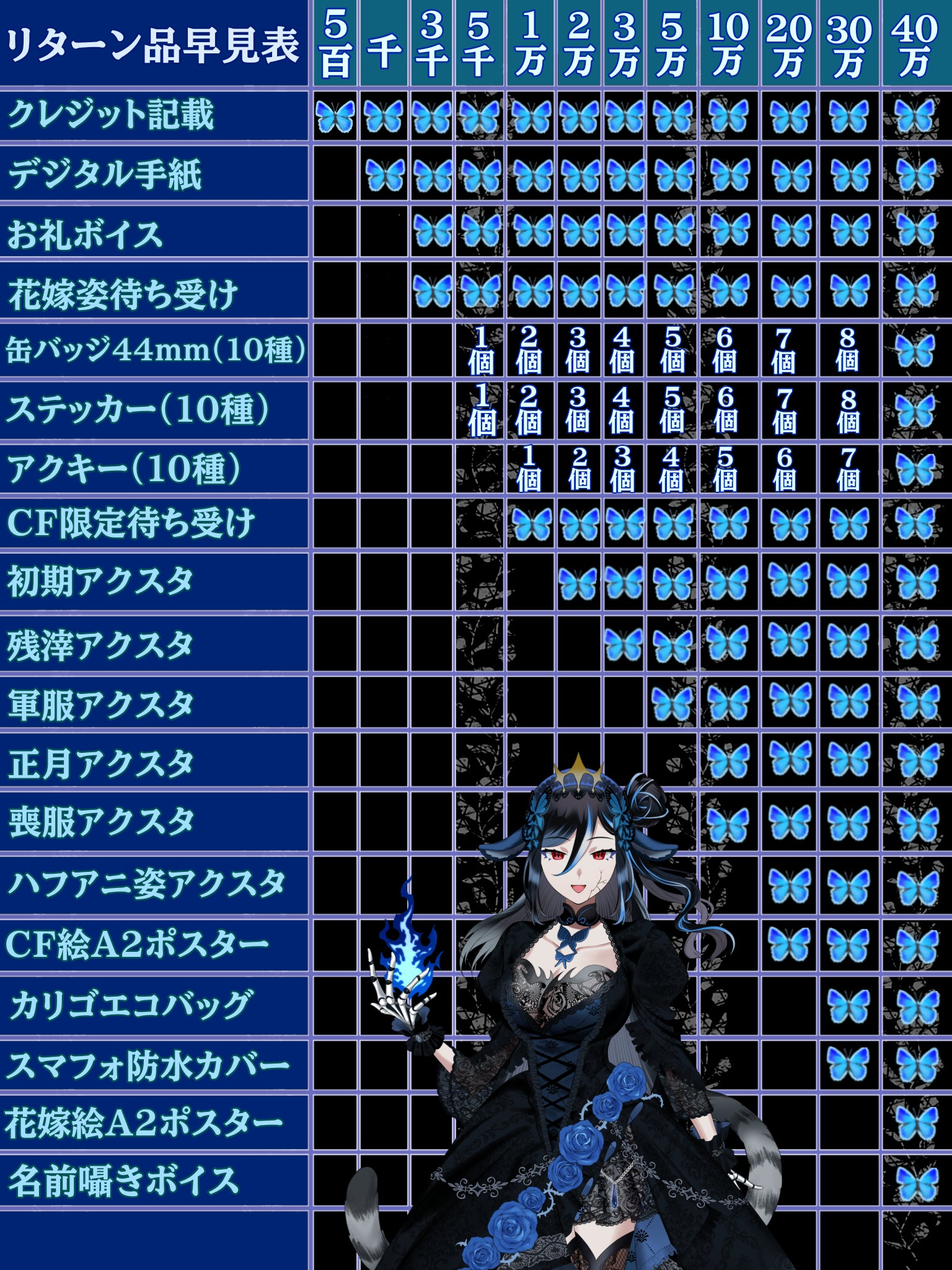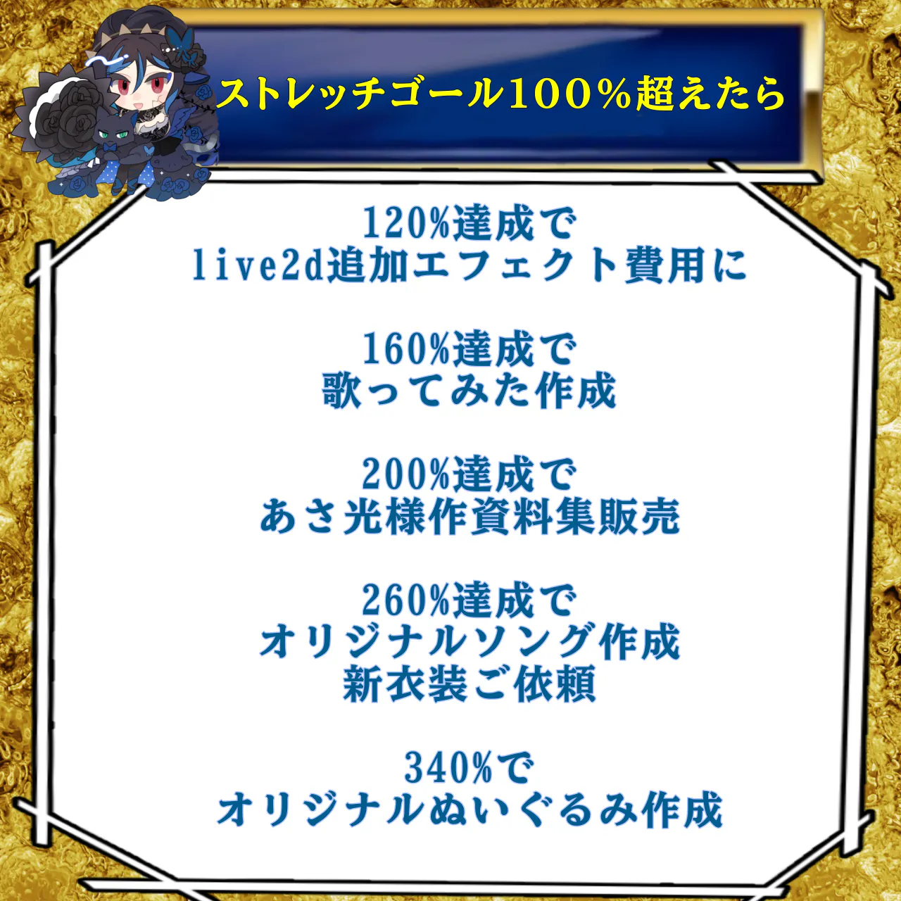 2024/10/01 01:59無名のVライバーにも関わらず沢山の応援ありがとうございました!現在の体調面具合でリターンが予定より遅くなる事があるのをご了承ください。予定・10月31日 振込み確認後LIVE2D打ち合わせ、予算と相談33万内に収める。大体11月〜12月目安・デジタル品のリターンお渡し 大体10月〜11月中・リターン品の絵師様への二次使用料金の支払い確認後グッズ品の注文→届き次第梱包して配送 大体来年〜2月目安、足りない費用は自費の為遅れる場合がございます。・ランダム品のリターンのものをルーレットで決めてメールにてお知らせ。IRIAMに来れる方は配信中に回させて頂きます。IRIAM ←こちらからアプリで見れます。この度は黒梦ヌムイ LIVE2D&ASMRマイク支援プロジェクトの応援ありがとうございました。ASMRマイクは届かなかったのですがまたいずれクラファンチャレンジ致します。まずはLIVE2D高可動域おめでとう自分!皆様が喜んで貰えるよう最大にいい女になって参ります。 もっと見る