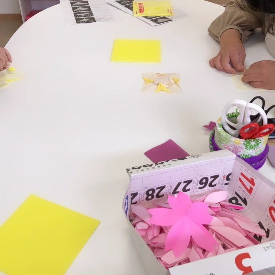 壁面に飾る大きなペーパーフラワー、無料配布用のペーパーフラワー
