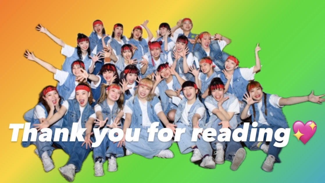 世界大会が終わった後も、私たちにしかできないダンス、エンターテイメントを追求し、沢山の方にハッピーをお届けできる存在になれるよう頑張ります!