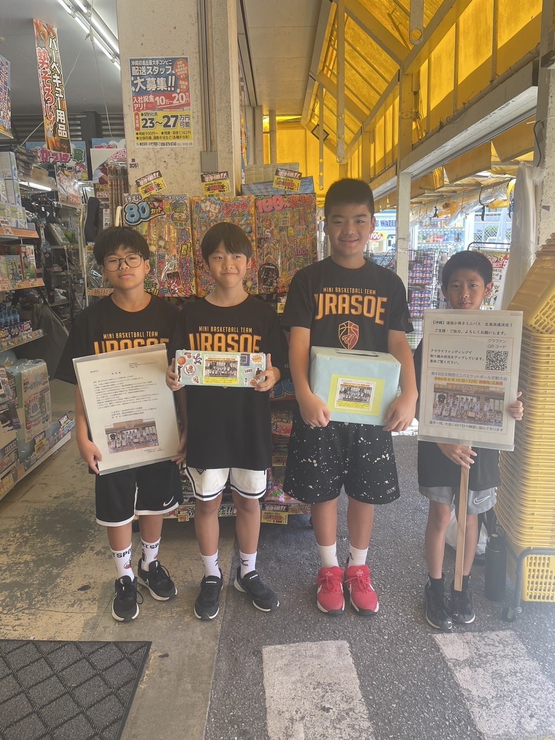 いつもあたたかいご支援をいただき、ありがとうございます。去った7月23日(火)にお隣の国・台湾に住む小学生の皆さんと浦添小のメンバーでミニバスケットボールの交流試合を行いました。対戦相手は、台湾北部・新竹にある「東門国民小学校」のバスケットボールチーム12名で、試合の方は、得点を奪い合う接戦でした。特に相手には170cm台の選手もいて、その高さを体感することができ、県大会そして広島遠征前に良い交流試合になったと思います。なおNHK沖縄 NEWS WEBで当日の様子を動画で視聴することができます。ご覧になりたい方はこちらをクリックしてください。暑い日が続いています、どうか皆様もお体ご自愛下さい。子どもたちにも夏風邪防止、熱中症対策とあらゆる予防に取り組むように心を鬼にして父母一同取り組んでおります。引き続きご支援・ご声援お願いいたします。友好の証として記念品をいただきました