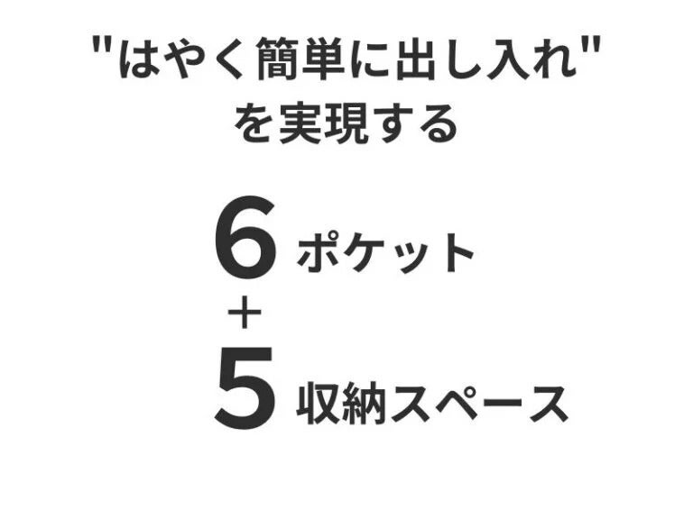 なのでポケット内部に5つの収納スペースをつくり、小分けしやすいようにしました。