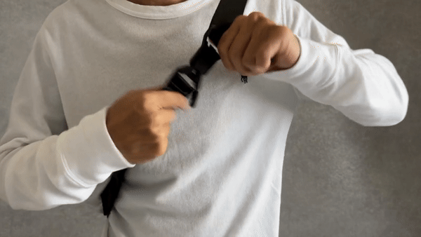 ショルダーバッグにはないフィット感で自由に動き回れるように、ダブルストラップバンドを採用しました。