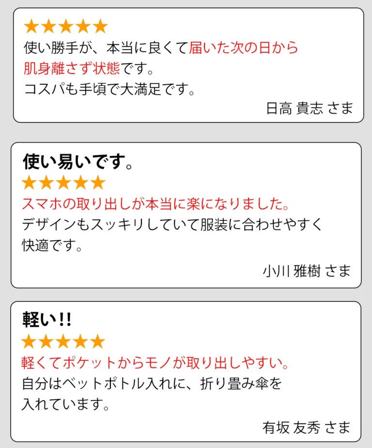 暑い日も、寒い日も、必要なものを過不足なくスマートに持ち歩けます。