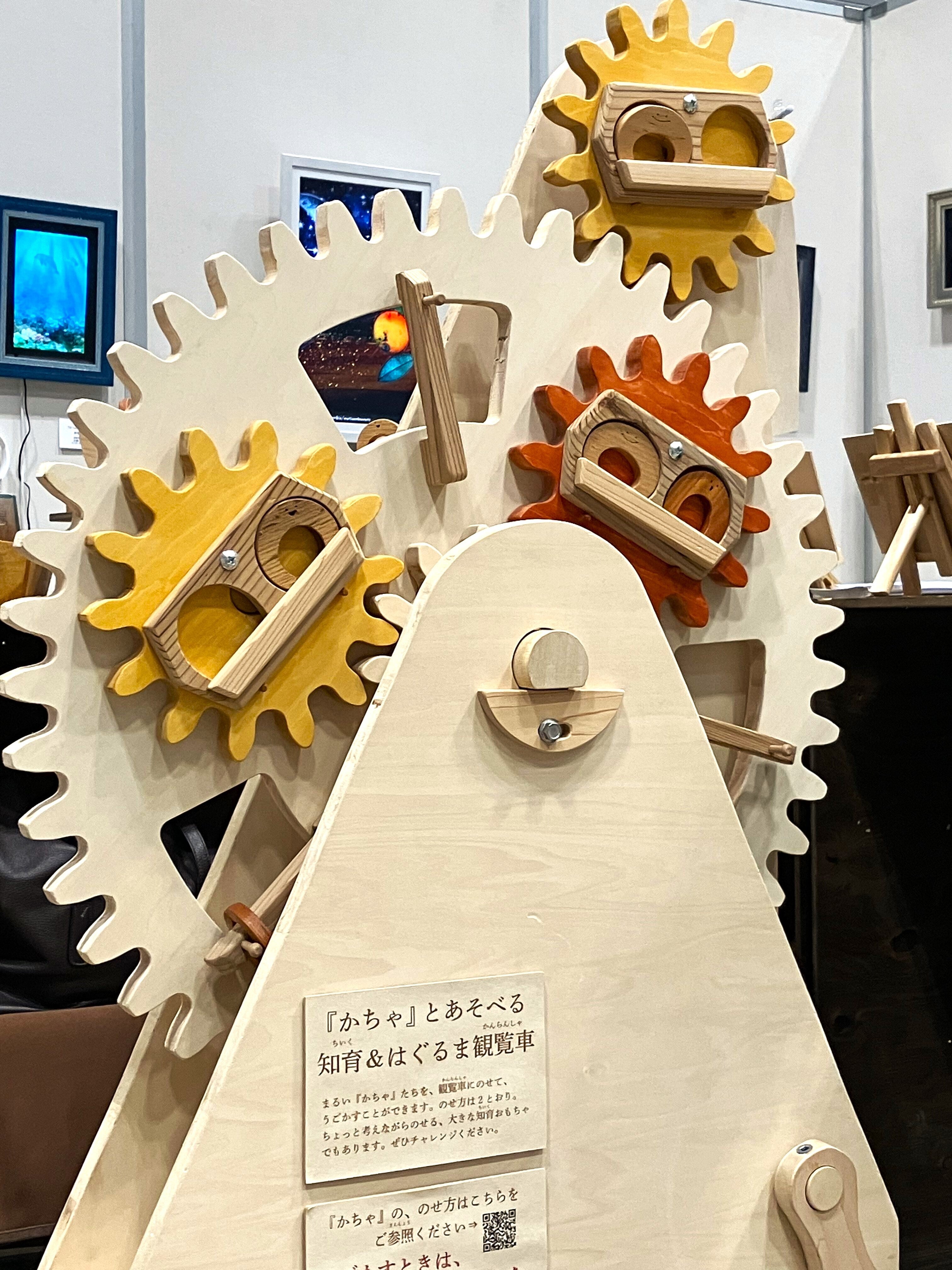 知恵を使いながら、きょうだい達を乗せて、ぐるぐる回せる大きな観覧車です。