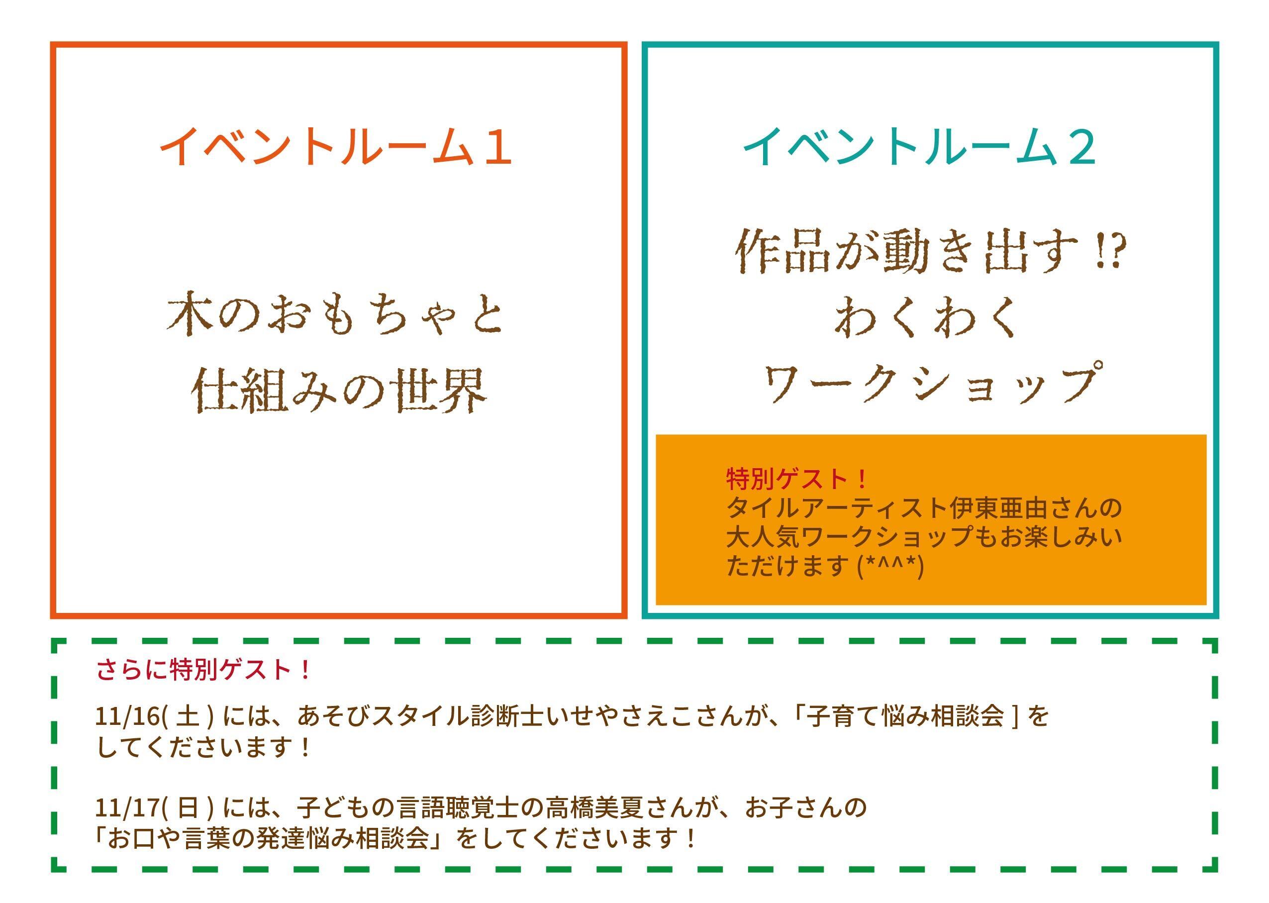 ワークショップもあるため、メインとなる対象年齢は5歳~小学生ですが、おもちゃ遊びは赤ちゃんから幅広い年齢のお子さんに、お楽しみいただけます(*^^*)