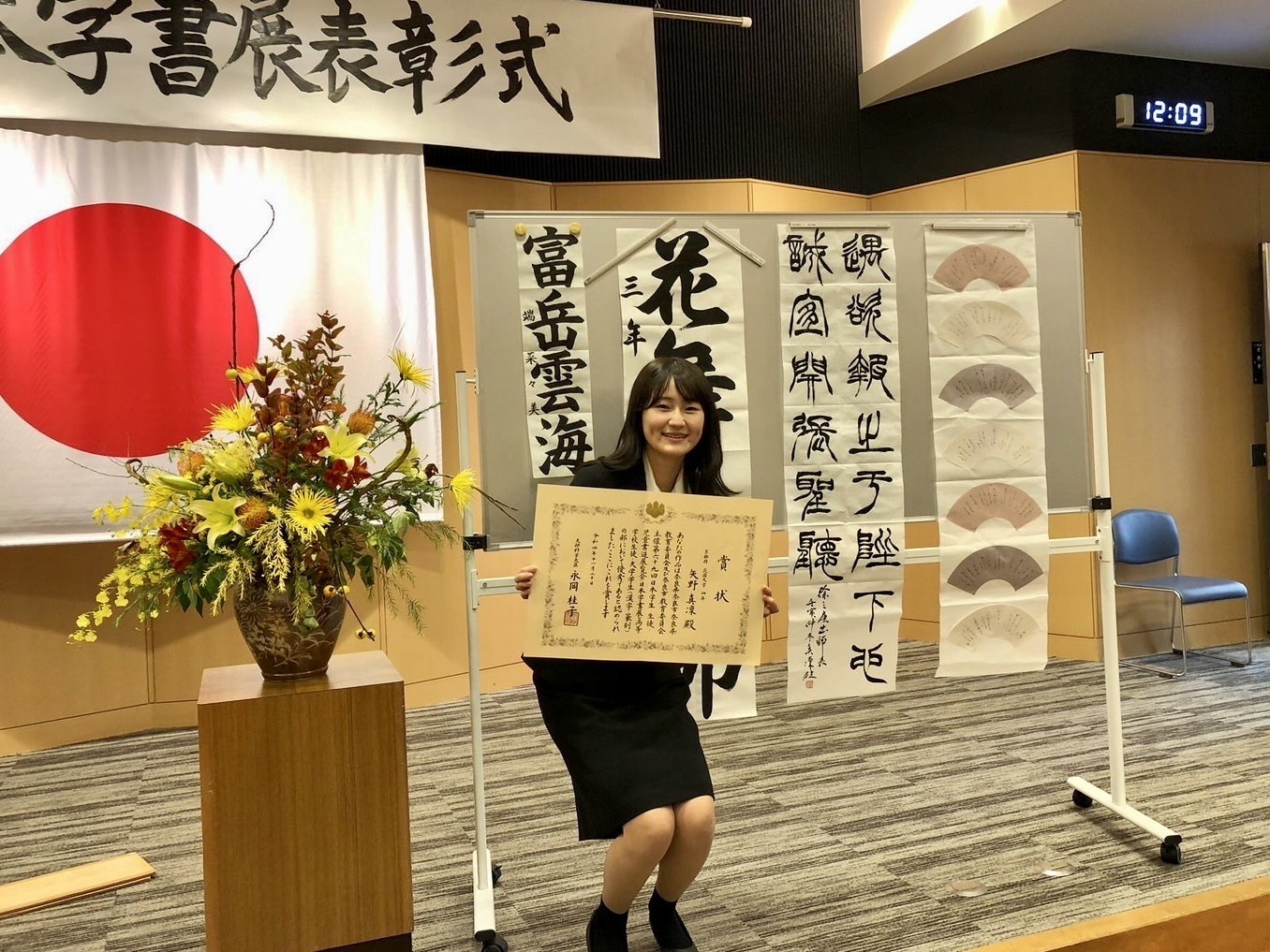 書道の教員免許も取得し、優秀学生として学長表彰され有終の美を飾る。