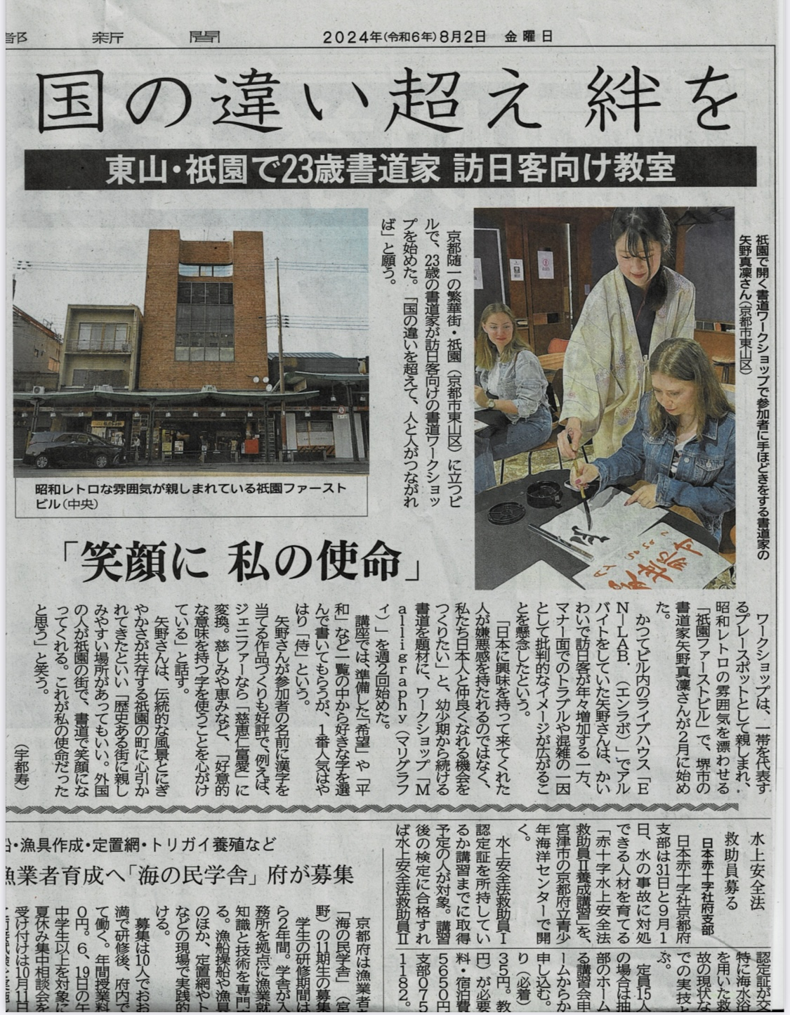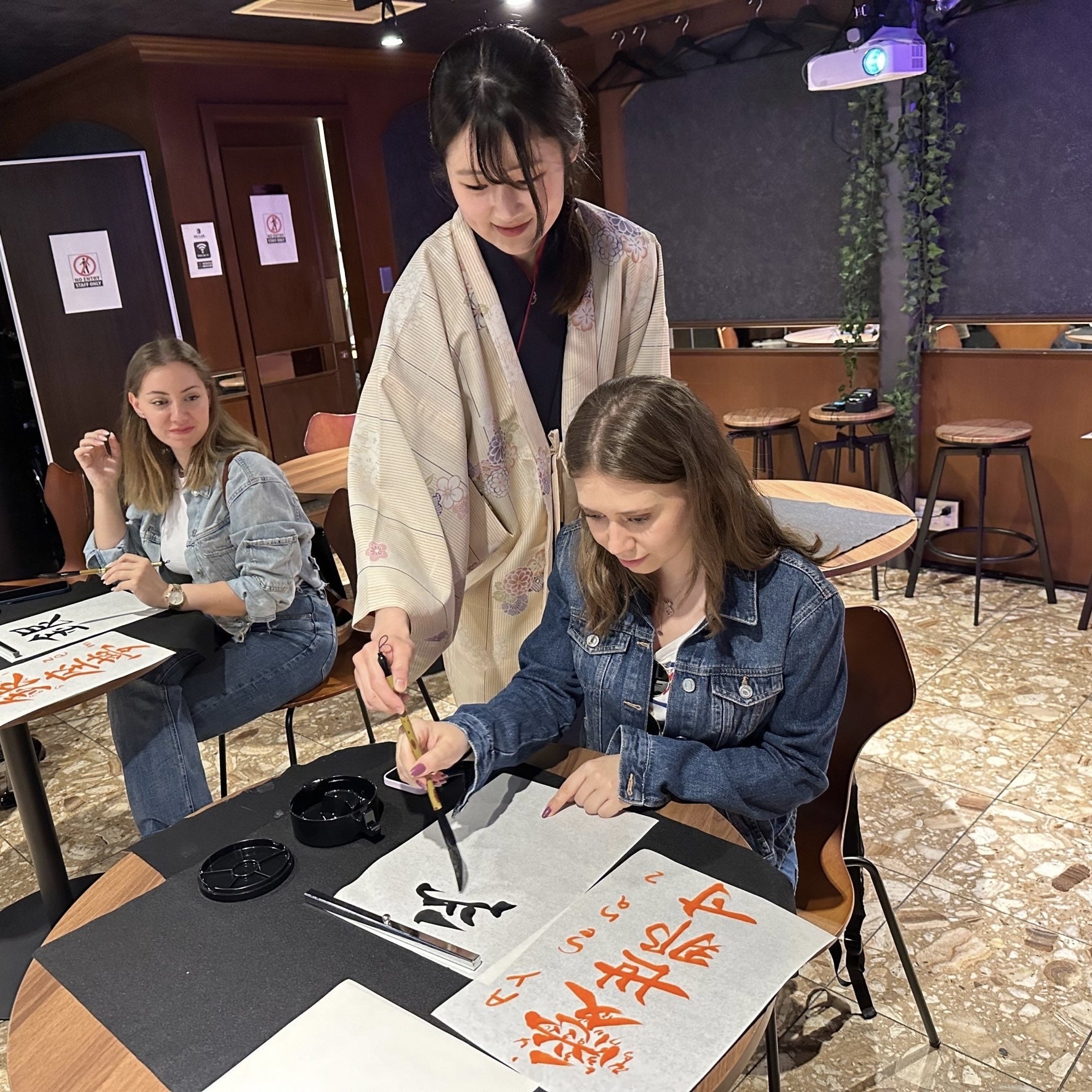 オープンし、祇園を訪れた外国人観光客に書道を教えています。