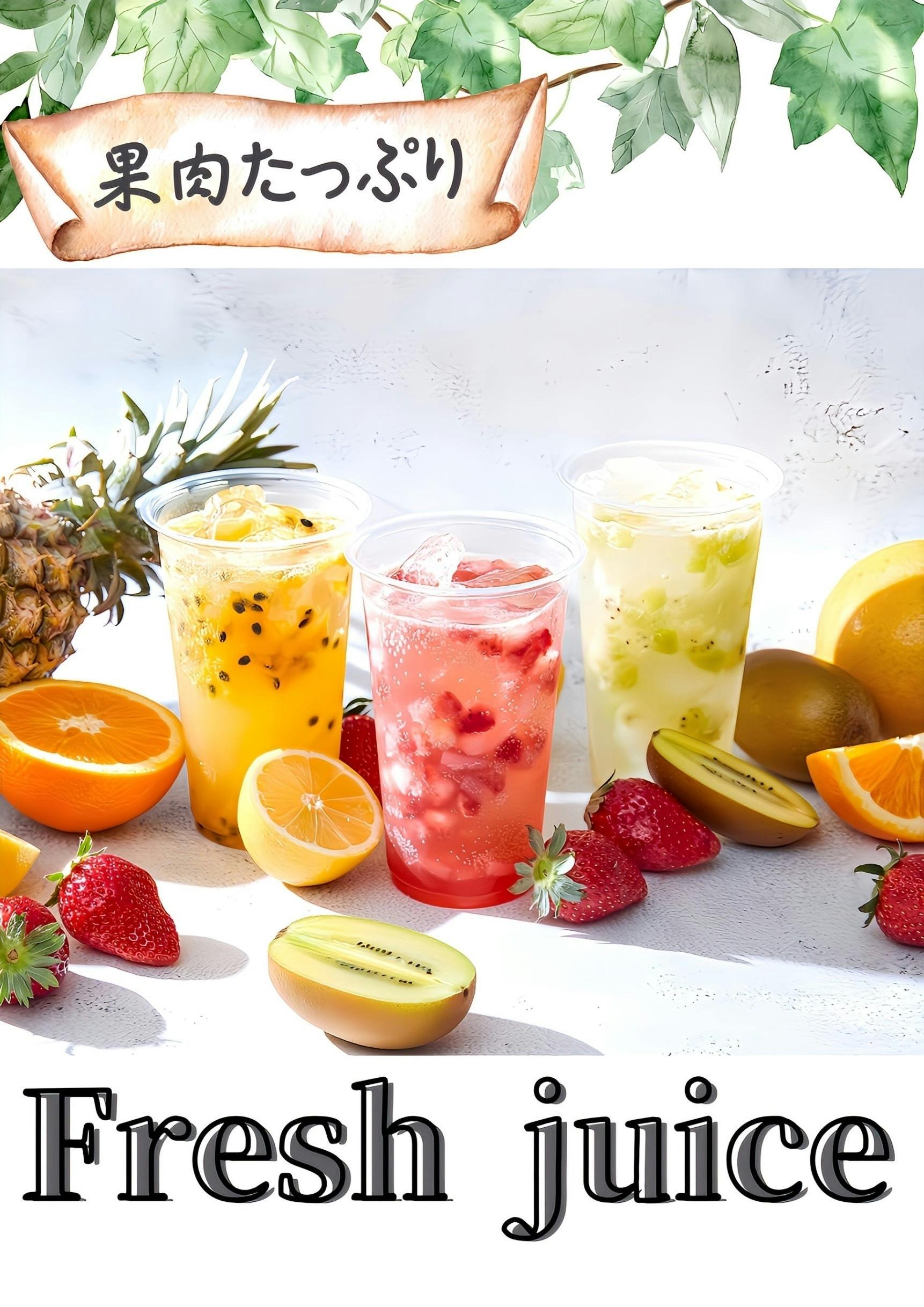 この暑さで欲しくなる新メニュー、果肉たっぷりフレッシュジュースをリリースしました。