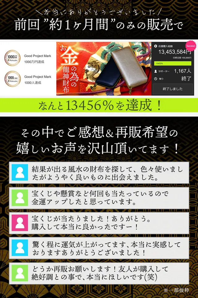 嬉しいお声が届き続ける「お金の為の龍神財布」皆様に大変多くの応援を頂きました
