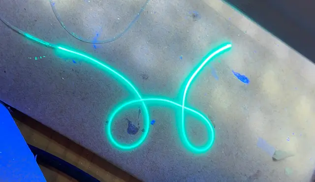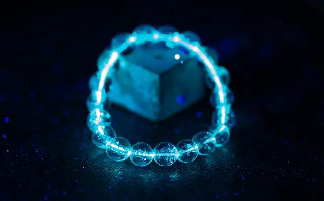 様々な光を集める特性を持つ本品は、UVライト(ブラックライト)等でより強力に輝き、