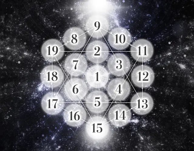 19粒の丸い物を結ぶことは、生命の木や六芒星を超える上位の象徴とされ、願いをサポー