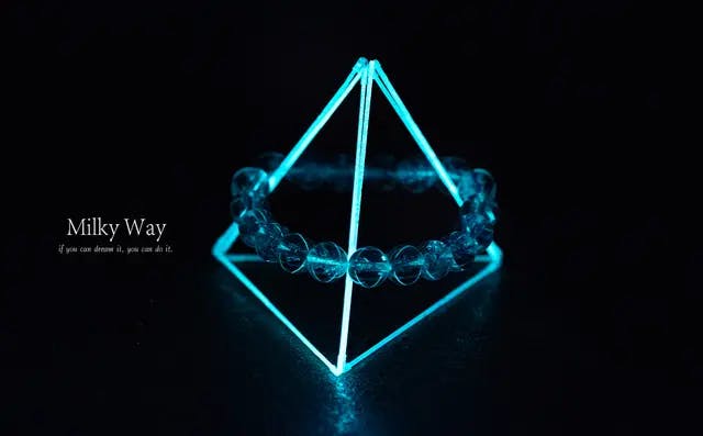 蓄光液を封入。太陽や月から光を集めたり電気やUVライトで、より力強く光るピラミッド