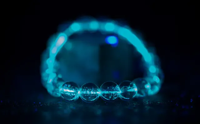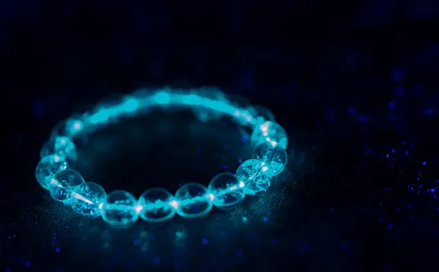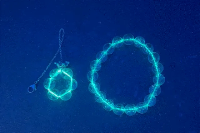 様々な光を集める特性を持つ本品は、UVライト(ブラックライト)等でより強力に輝き、