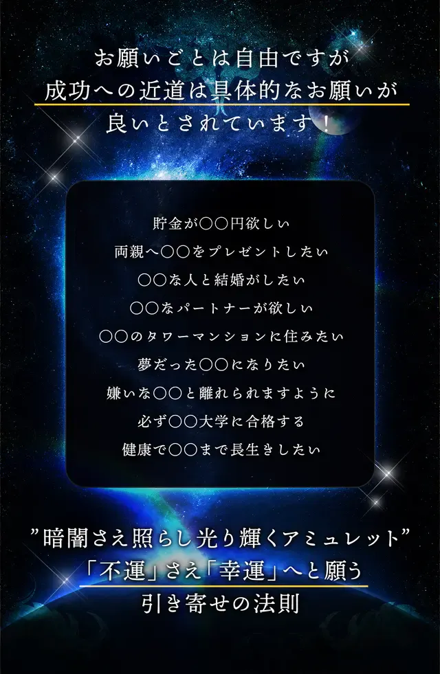思いつく限りすべての夢をお願いしてください!強く願い強く想う事で、光を”まとい”