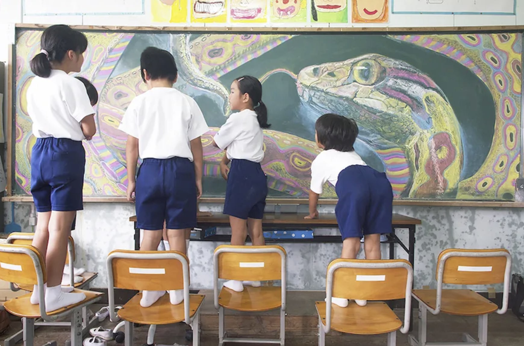 2023年 龍郷町立赤徳小学校 黒板ジャック / 龍郷町立大勝小学校 黒板ジャック / 奄美市立崎原小中学校 対話鑑賞&壁画制作プロジェクト