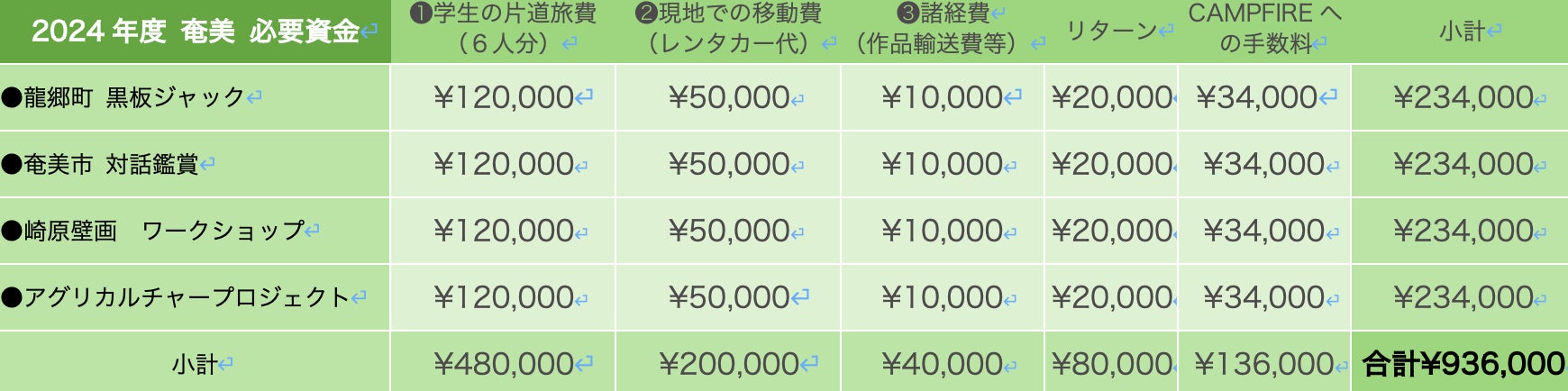 ※目標金額を超えた場合は、次回以降の奄美でのプロジェクトの企画運営費として繰り越します。